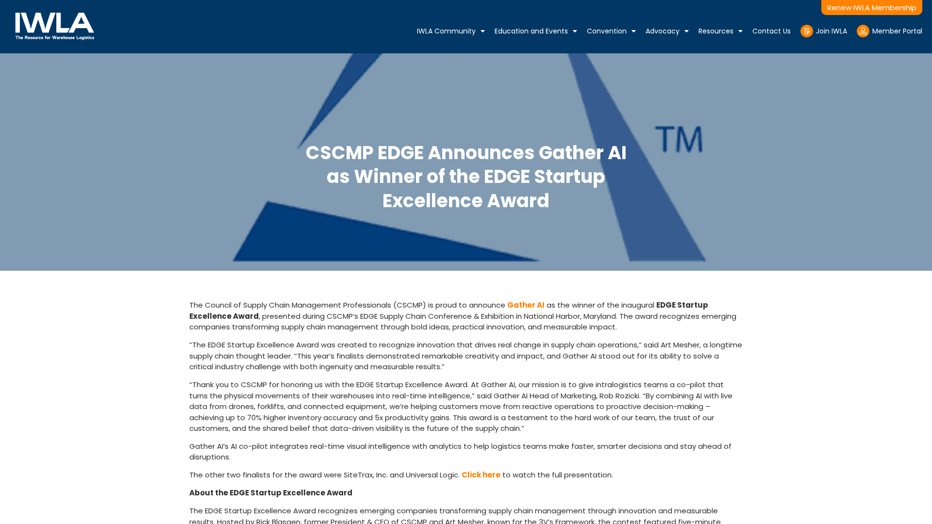 Gather AI wins the inaugural EDGE Startup Excellence Award for real-time warehouse intelligence at CSCMP’s EDGE conference.