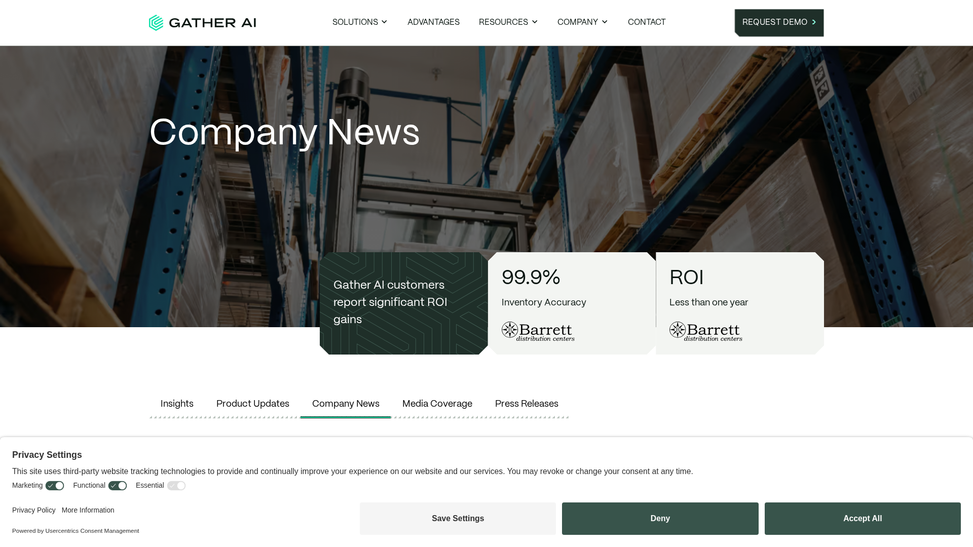 A hub of press coverage on Gather AI's AI-powered drones and MHE vision transforming warehouse inventory
