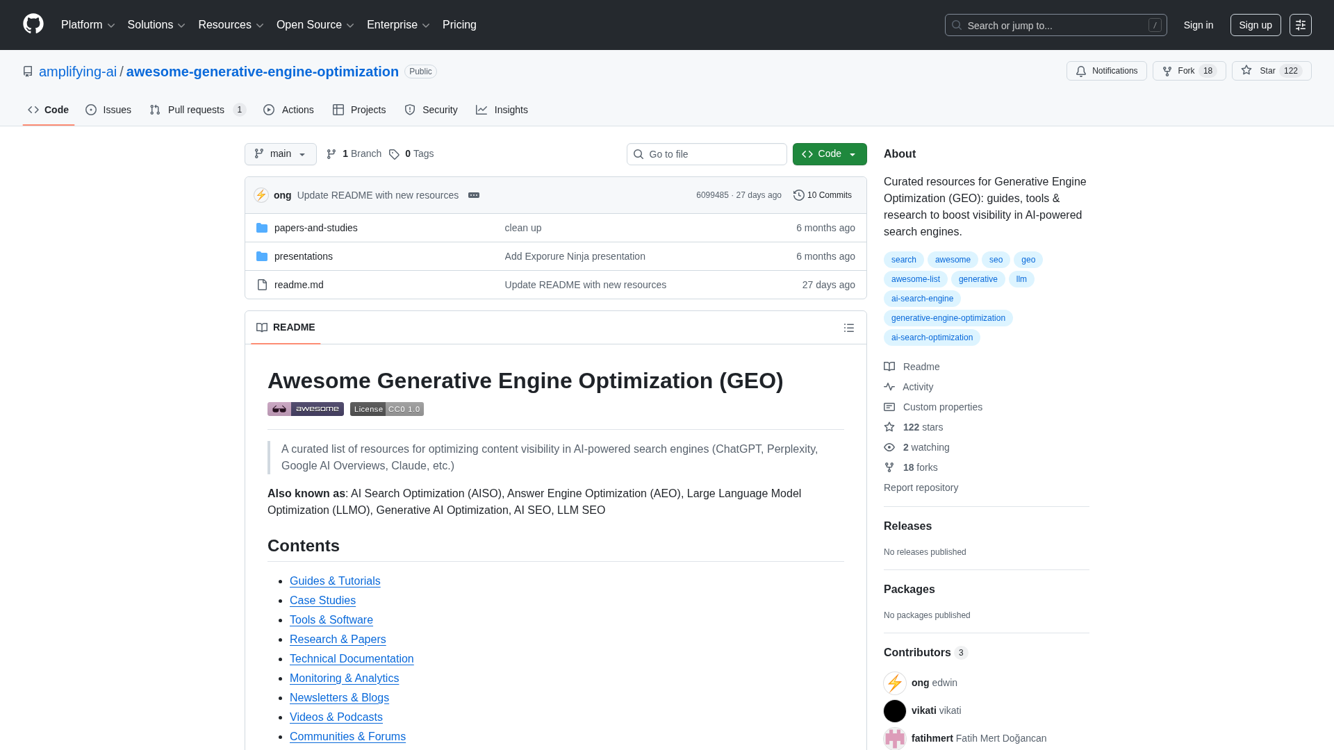 A comprehensive, community-curated resource hub for Generative Engine Optimization to boost AI-citation visibility.