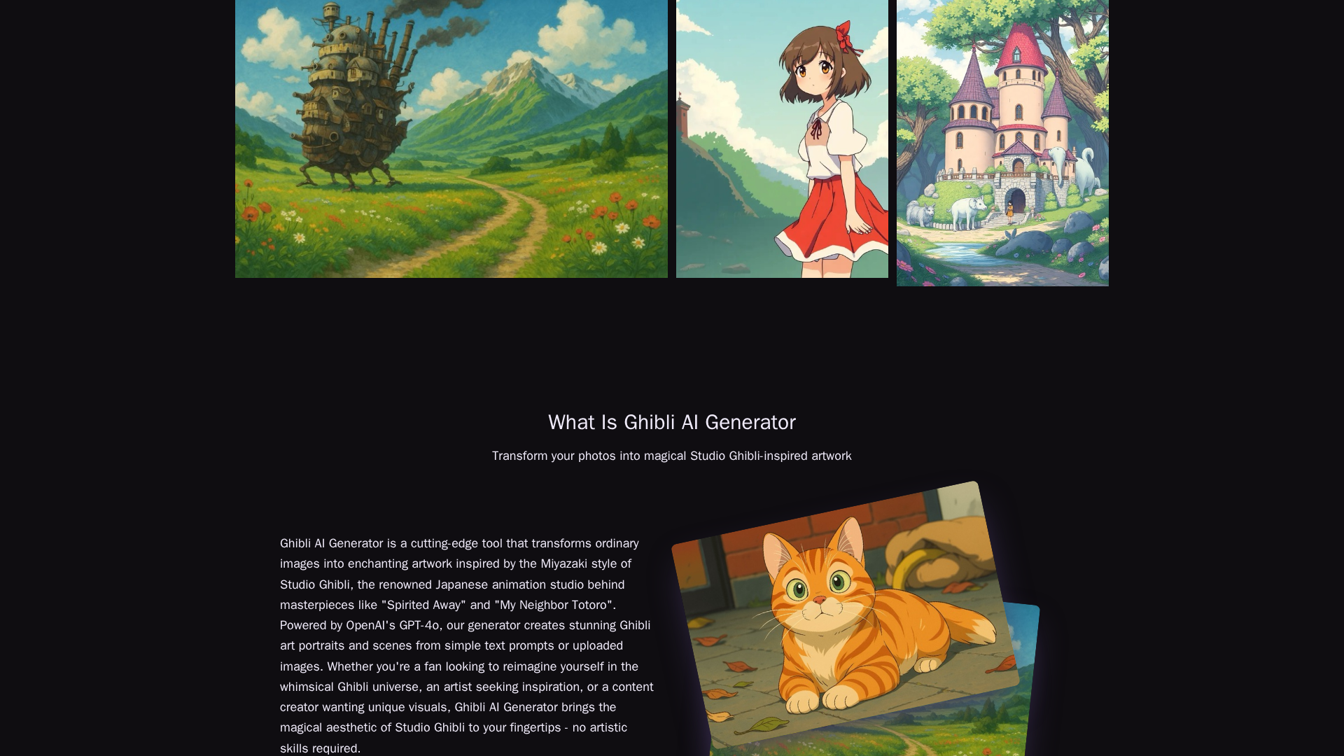 - Fans:Enjoy Studio Ghibli-inspired outputs for personal projects and fan art