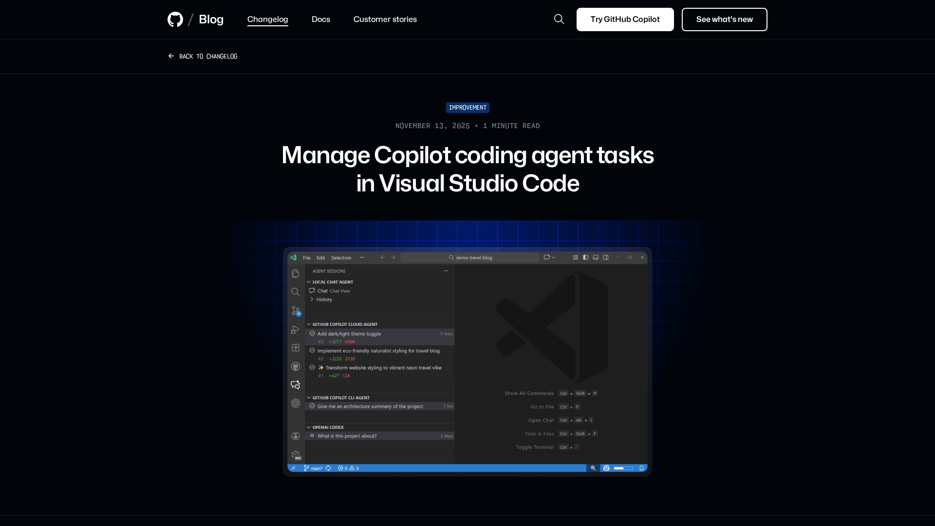 Manage Copilot coding agent tasks, view session rationale, and switch tasks—directly in VS Code.