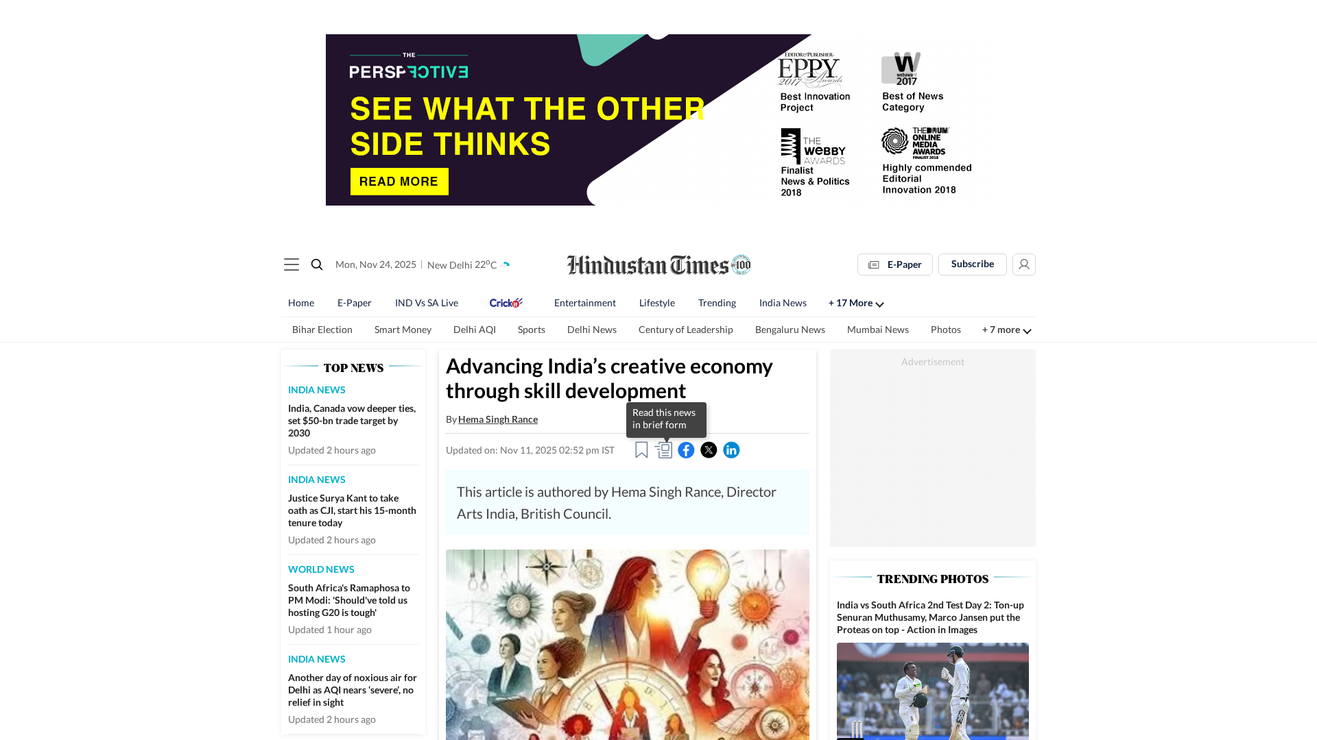 An opinion piece arguing that India’s creative economy can unlock growth through skill development, collaboration, and inclusive education.