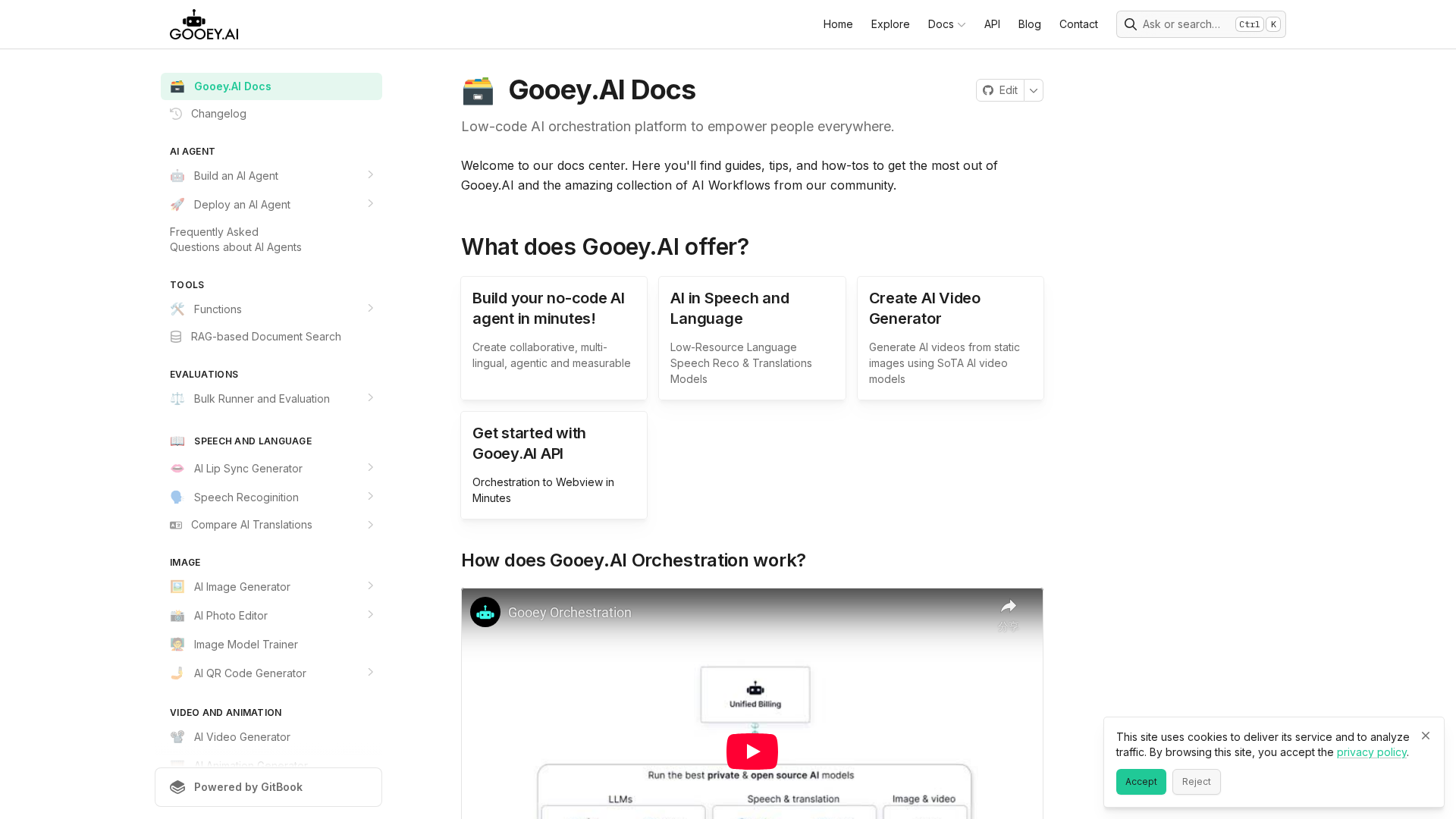 Official Gooey.AI docs hub with explainer videos, guides, and API references for low-code AI orchestration.