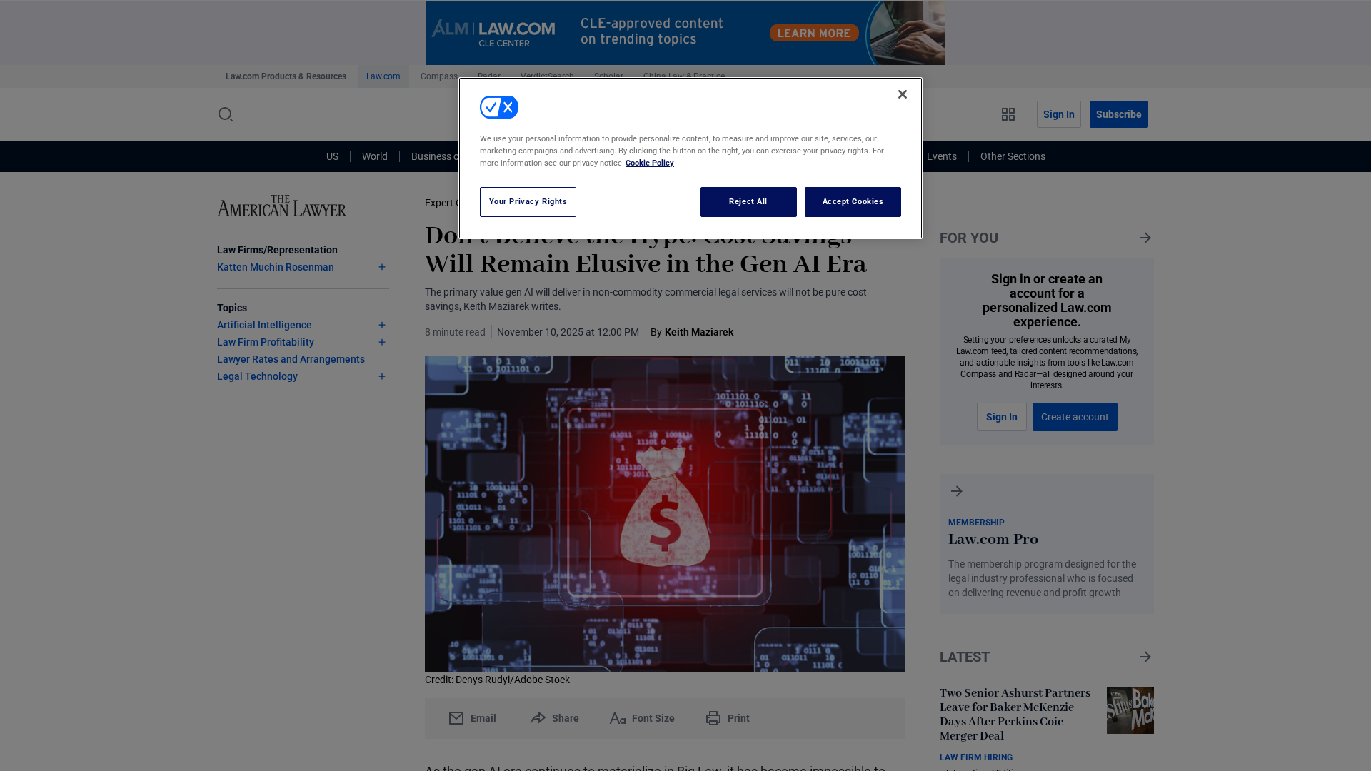 Cautionary analysis arguing Gen AI will deliver productivity gains, but real cost savings may remain elusive in Big Law.