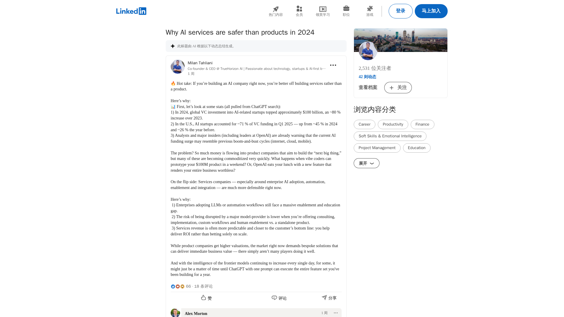 Hot take: focus on AI services—consulting, integration, and bespoke workflows—for defensible, ROI-driven growth in 2024.