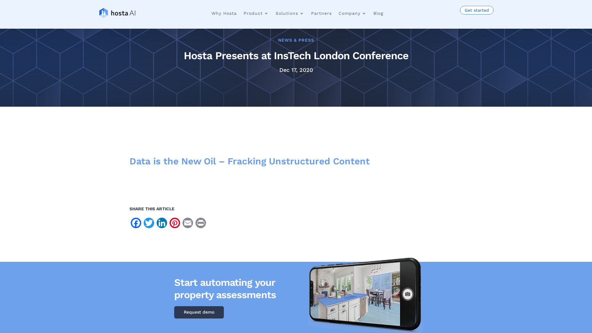 Hosta presents an AI-powered, photo-based remote property assessment platform at InsTech London, with secure cloud AI and configurable APIs.