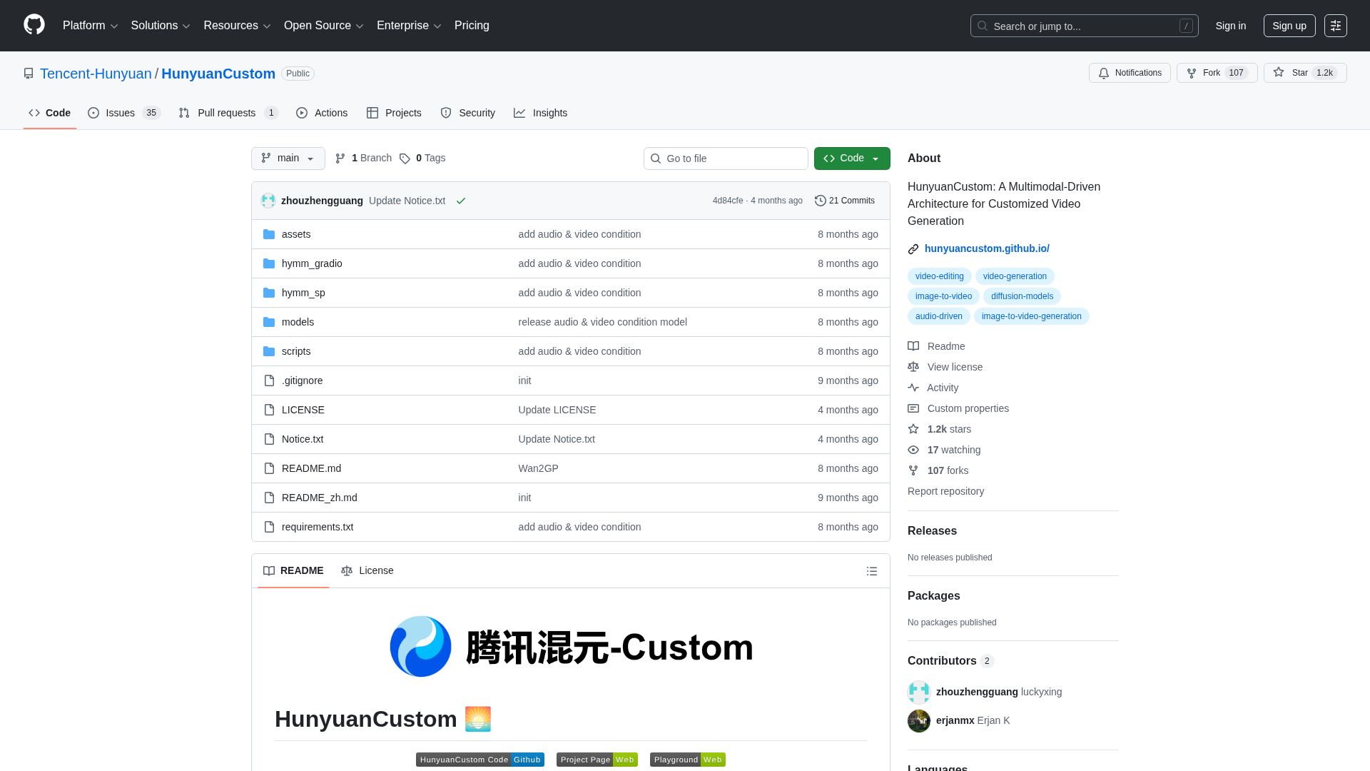 HunyuanCustom is a multimodal conditional video-generation pipeline designed to preserve subject identity while supporting flexible conditioning from text, images, audio, and video. Built on a HunyuanVideo backbone, it introduces modules to close modality gaps and prevent identity drift so generated videos remain faithful to a provided subject image(s). Key components include a Text–image fusion module (LLaVA-based) for injecting image identity cues into text prompts, an Image ID enhancement module that temporally concatenates image features across frames, AudioNet for audio-conditioned alignment of audio and visual features, and a patchify-based video-driven injection for latent-conditioned editing. The framework uses a disentangled identity representation to decouple identity information from other modalities, enabling independent control over image, audio, and video inputs. Supported workflows include single-subject video customization, video-driven editing with masks, and audio-driven customization, with downstream use cases such as singing avatars and virtual advertisements. Deployment details cover Linux, CUDA, PyTorch, multi-GPU setups, and Docker/Gradio-based tooling.