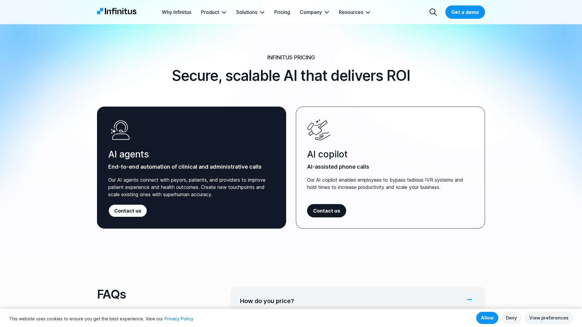 Infinitus Systems provides a safety-first, enterprise-grade voice AI platform that automates clinical and administrative healthcare calls. The platform uses multi-model AI agents and copilots (FastTrack) with a coordination/guardrail layer, dynamic knowledge graphs, and direct integrations to payors, EHRs, and CRMs to complete tasks like benefit verification, prior authorization follow-ups, prescription follow-ups, patient outreach, and provider directory confirmations. Infinitus emphasizes compliance (HIPAA, SOC 2 Type II, hosted on HITRUST-certified cloud infrastructure), low-latency conversational performance, and measurable ROI at scale. Deployments are marketed as enterprise-focused, with integration timelines quoted in weeks and flexible pricing for usage and subscription models. (Source: homepage, product, why-infinitus, FastTrack pages)