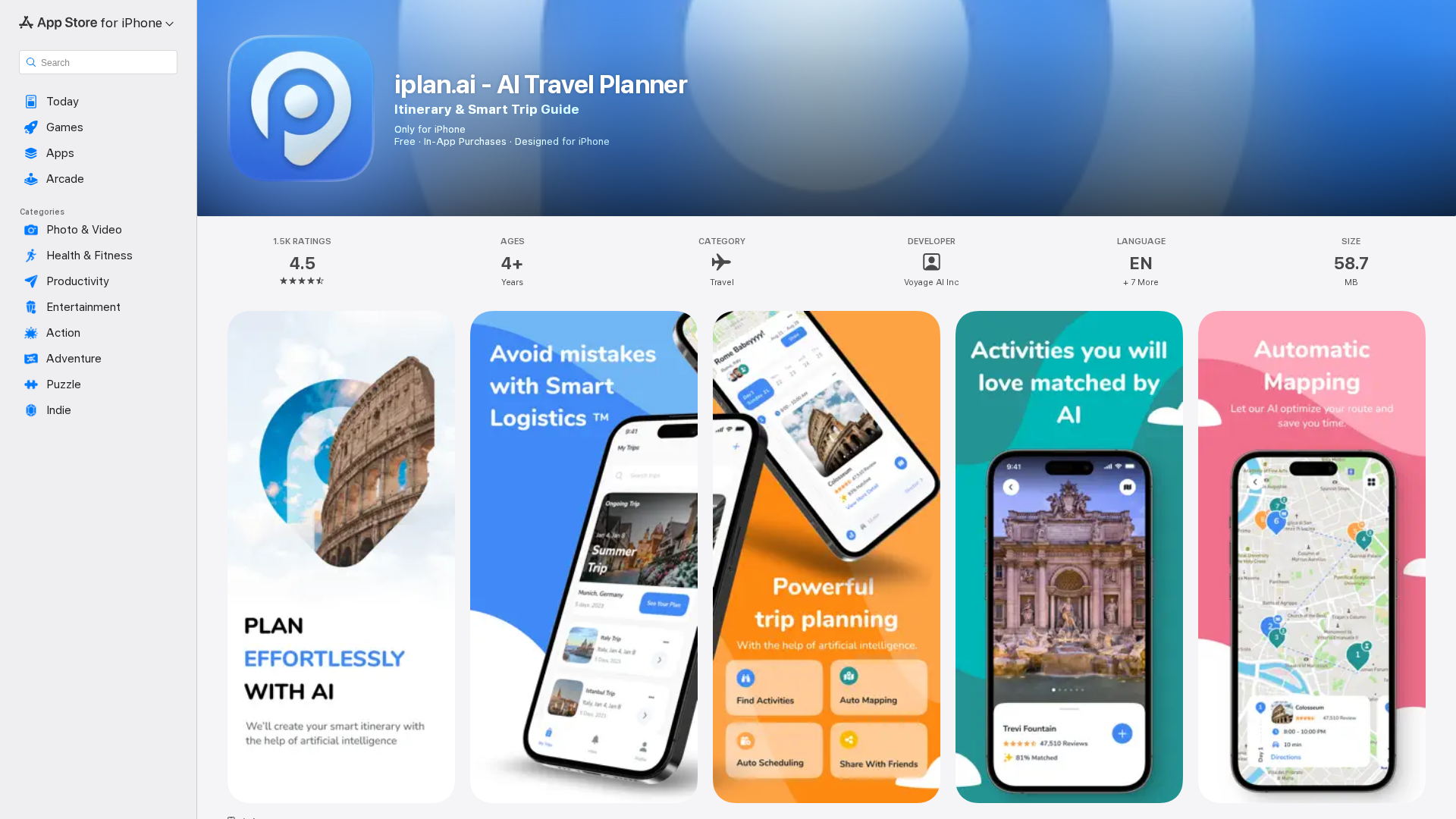 AI-driven travel planning app for iPhone that creates quick itineraries, maps routes, and evolves with updates and in‑app purchases.
