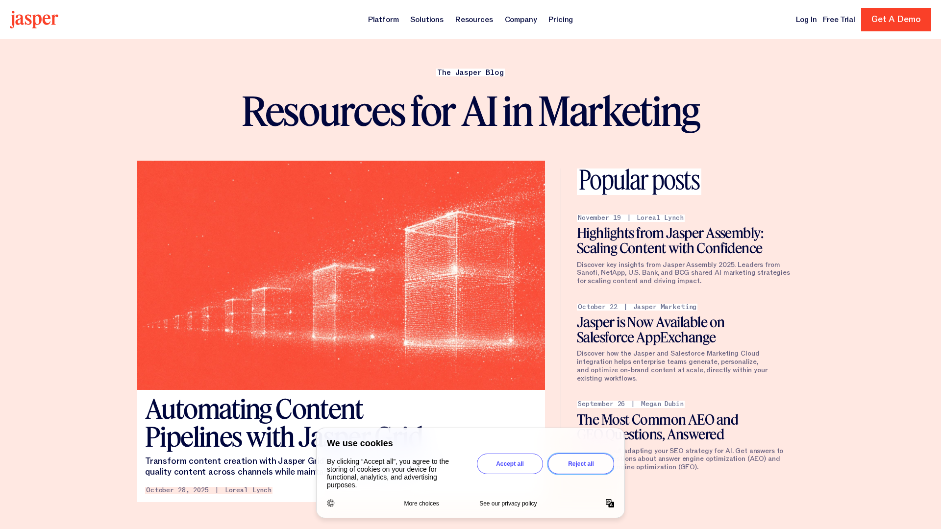 A comprehensive Jasper blog hub featuring Grid automation, GEO/AEO SEO, and enterprise AI marketing case studies.