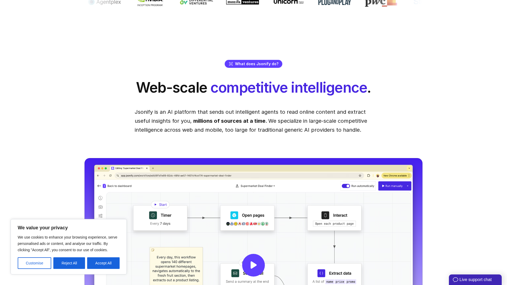 | Feature | Jsonify: AI Agents That Turn Millions of Sources into Enterprise-Grade Competitive Intelligence | Cimba.AI | Magical Agentic AI |