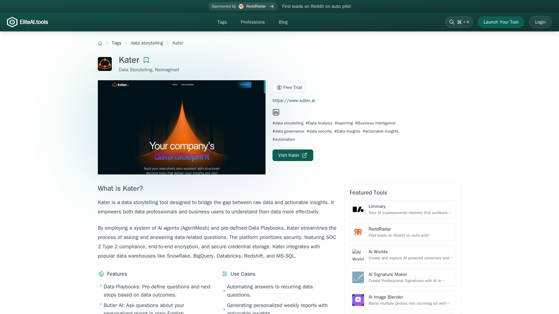 Kater uses AI agents and data playbooks to turn data questions into actionable, secure insights with plain-English queries and automated reports.