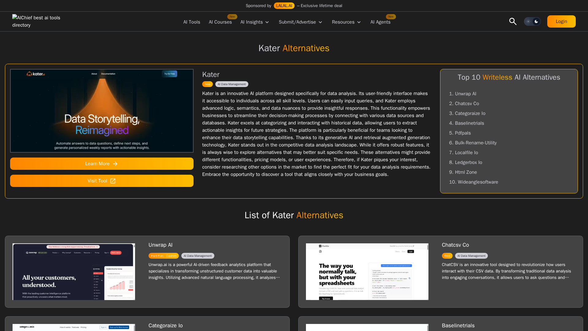 A comprehensive directory of Kater alternatives with 10 top writeless AI picks and many more tools across content, analytics, CRM, and education.