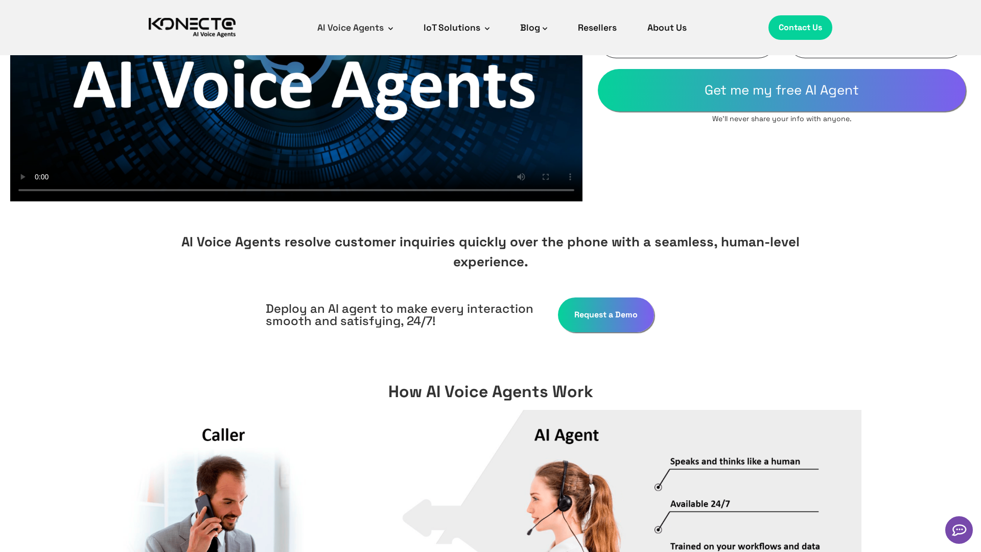 Konecto (Eludix LLC DBA Konecto) offers 24/7, human-like AI Voice Agents for inbound and outbound phone workflows (customer service, sales, logistics, and custom agents). The platform is positioned to replace or augment repetitive phone tasks, scale voice interactions with data-driven personalization, and apply continuous learning with escalation to human agents when required. Konecto also publishes broader AI offerings (enterprise analytics, computer vision, generative AI, AI+IoT) and IoT/network services (LoRaWAN gateways, NOC, devices). Site-listed capabilities include emotionally intelligent natural conversations, inbound and outbound workflows (reminders, confirmations, proactive outreach), integrations with existing IT systems, ability to ingest documents for training (single PDF/text up to 10 MB to begin training), recordings for audit/compliance, and real-time dashboards/analytics. Deployment timelines on the site are claimed at approximately 2–6 weeks depending on integrations. The site presents multiple vendor performance/business claims (e.g., 1300+ deployed agents, ~160,000 calls per day, over $200M saved, up to 90% of provider interactions automated, ~80% average First Contact Resolution); these are presented on the site as vendor claims and were not independently verified in this summary. Contact options and trial details are listed on the site (live demo phone number, free 2-week personalized pilot). Public, itemized pricing (per-agent, per-minute, subscription tiers) is not published on the site; the site references competitive pricing for resellers and notes a typical onboarding fee of $5,000 (which may be waived for qualified partners in a Q1 promotion). Privacy and data deletion processes are documented (data deletion requests via email), and the site emphasizes privacy while acknowledging standard security disclaimers. This summary reflects information found on konecto.io and links provided by the site; no additional external verification was performed.