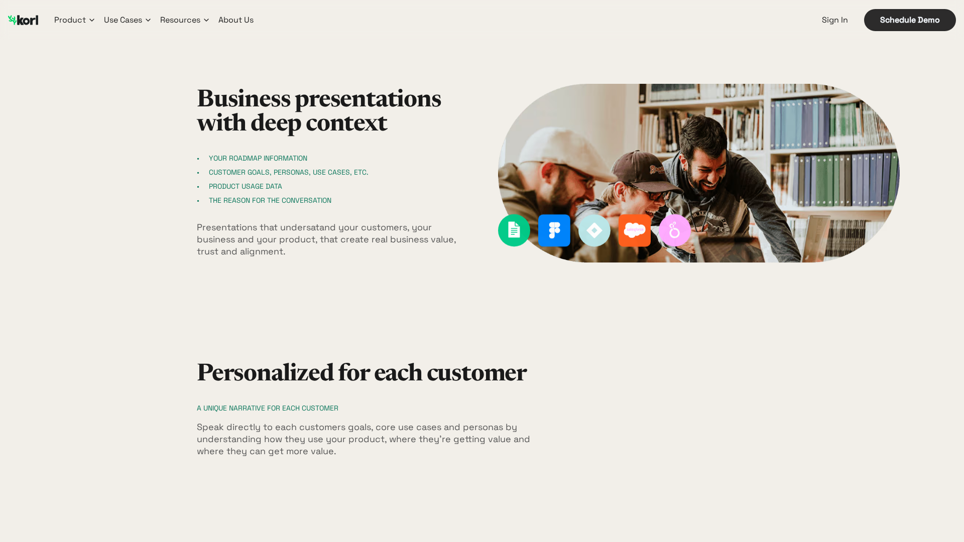 Korl is an AI-first platform that converts scattered product and customer data into polished, customer-specific presentations and communications for customer-facing teams. It uses purpose-built AI agents to ingest data from Jira, Salesforce, Google Docs/Slides, Confluence, Figma, and other sources to build rich per-customer profiles, surface product usage and outcomes, and generate branded, on-message slide decks for QBRs, roadmap reviews, and renewal conversations. Korl also recreates a company's visual identity from an uploaded deck to produce reusable templates, automates routine presentation drafting as milestones approach, and enriches sparse data with suggested positioning and talk tracks. The product is focused on driving better renewals and expansion by surfacing relevant product value, improving meeting efficiency, and maintaining consistent messaging across teams.