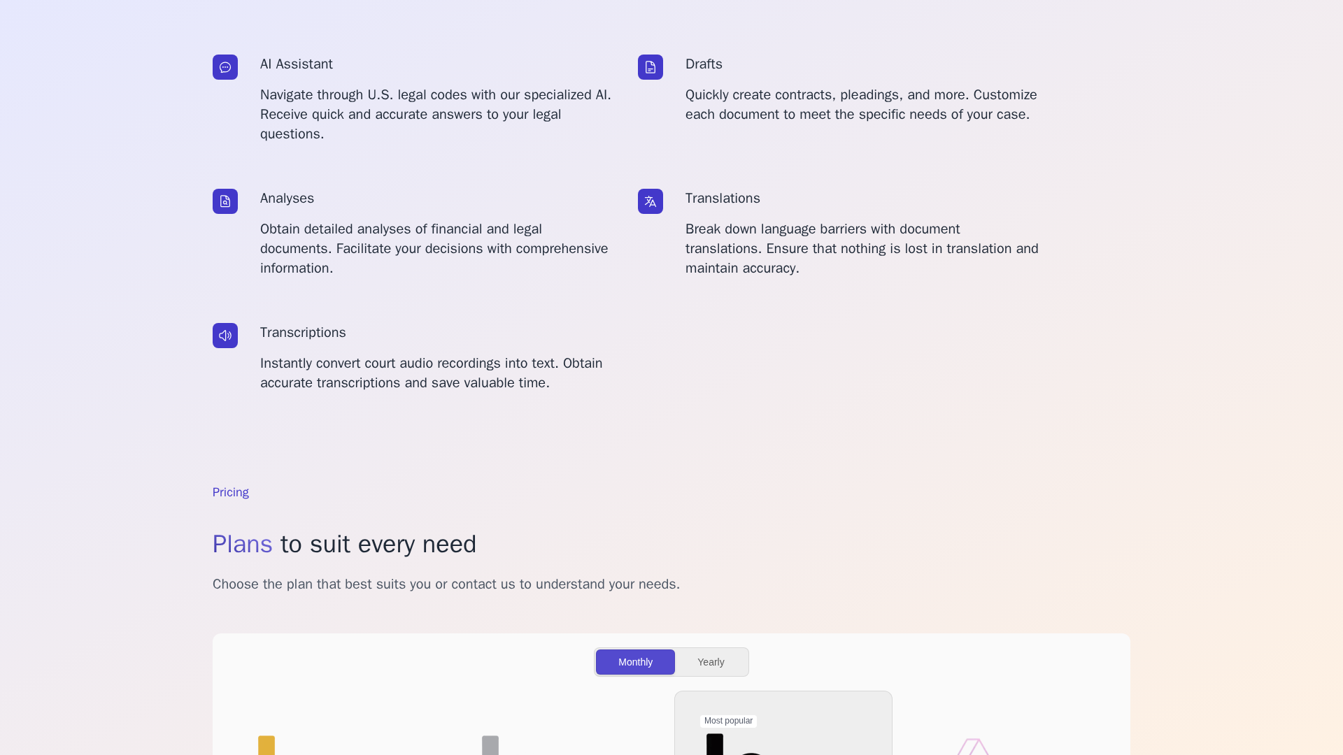 - ✓All-in-one AI toolkit for legal professionals
