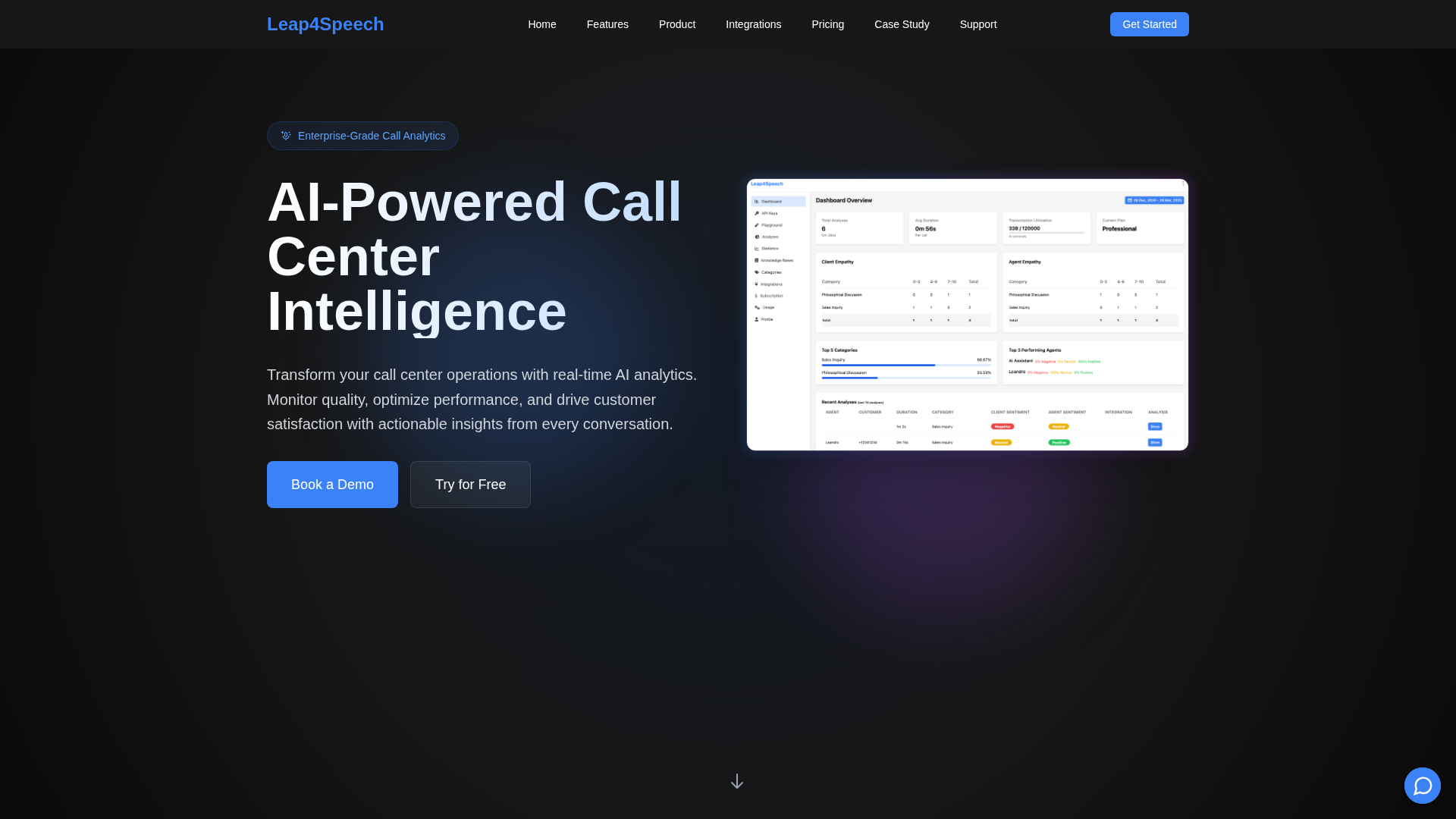 Leap4Speech is an enterprise-grade, real-time AI call analytics and quality platform for contact centers. It promises 100% call coverage, delivering immediate, actionable insights to improve customer experience (CX), QA, agent performance, and operational efficiency. Observed capabilities include real-time transcription and analysis of calls, deep sentiment analysis for both customers and agents (tone, empathy, professionalism, and emotional trends), knowledge-base alignment with accuracy scoring and flags for discrepancies, topic extraction and categorization with escalation prompts, automated knowledge-base driven support (document summarization, topic extraction, AI question generation), and an AI chatbot for instant answers using the knowledge base. It also supports CRM and communications integrations to sync recordings, analytics, and call metadata for a 360° view. Integrations mentioned include HubSpot, Spectrum, Zoho, Kazoo, and other popular tools. Pricing is presented in AUD per month across Basic, Professional, and Enterprise tiers, with custom/integration options and note of a potential need to contact for additional details. Privacy/compliance notes and recommended verification steps are also provided.