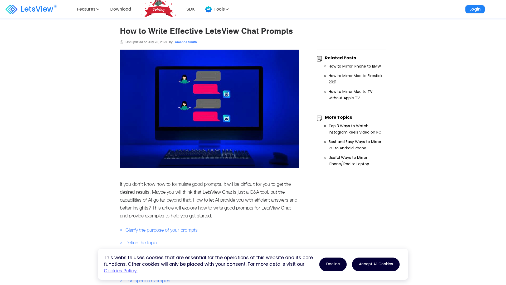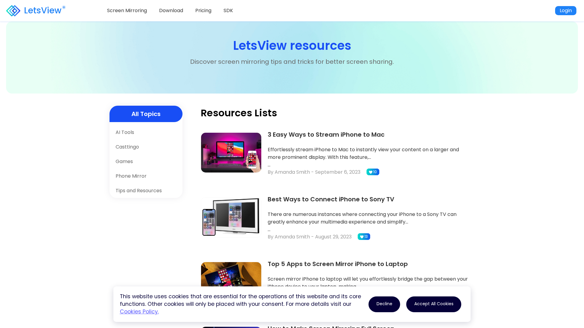 A LetsView resources hub offering practical tips for screen mirroring across iPhone, Mac, TV, and laptops.