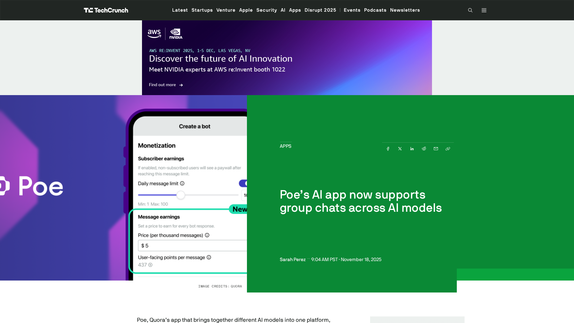 Poe launches cross-model group chats, letting up to 200 participants collaborate across 200+ AI models in a single conversation.
