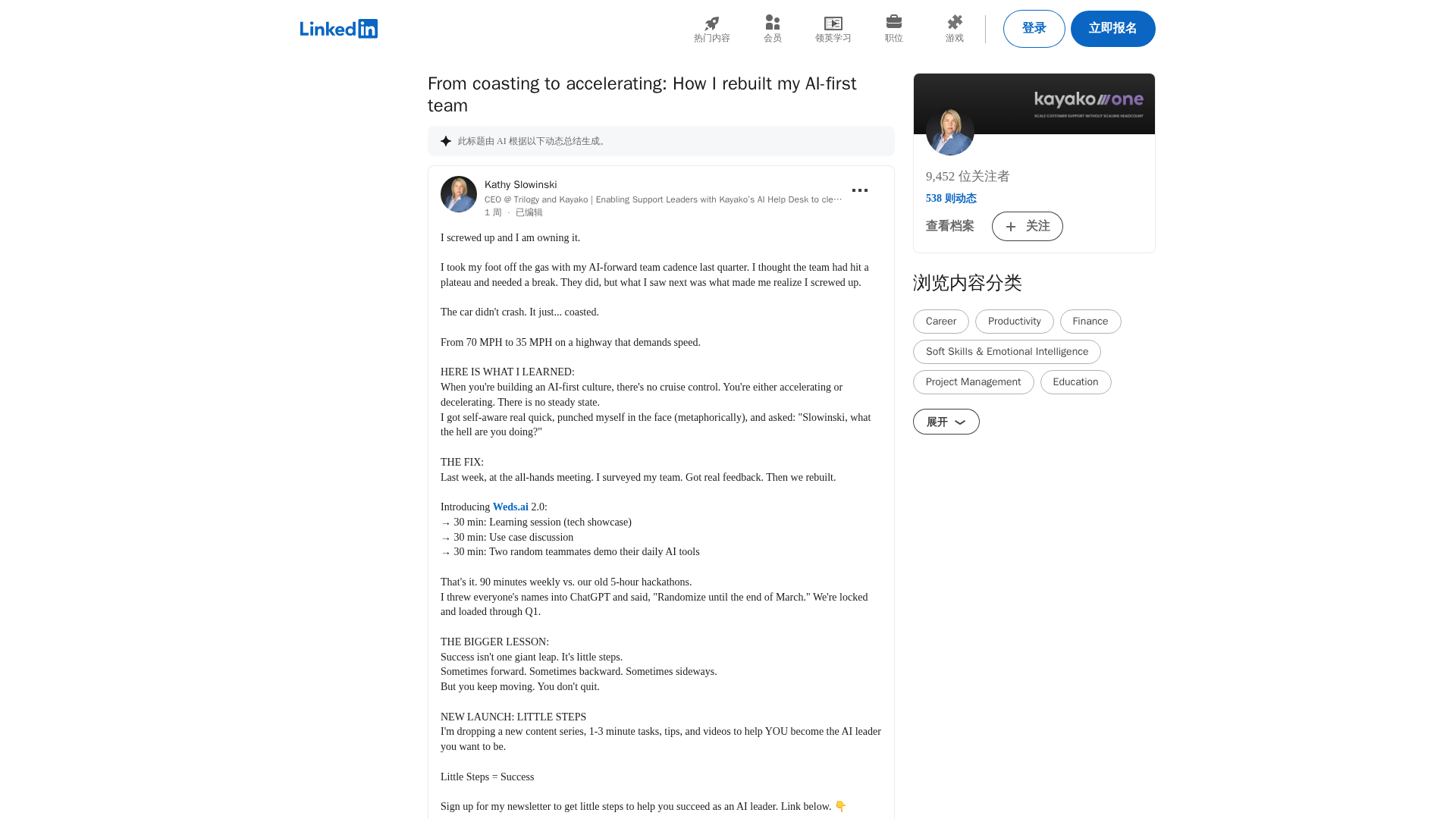 A candid account of rebooting an AI-first team with a 90-minute weekly cadence and a focus on small, steady steps.