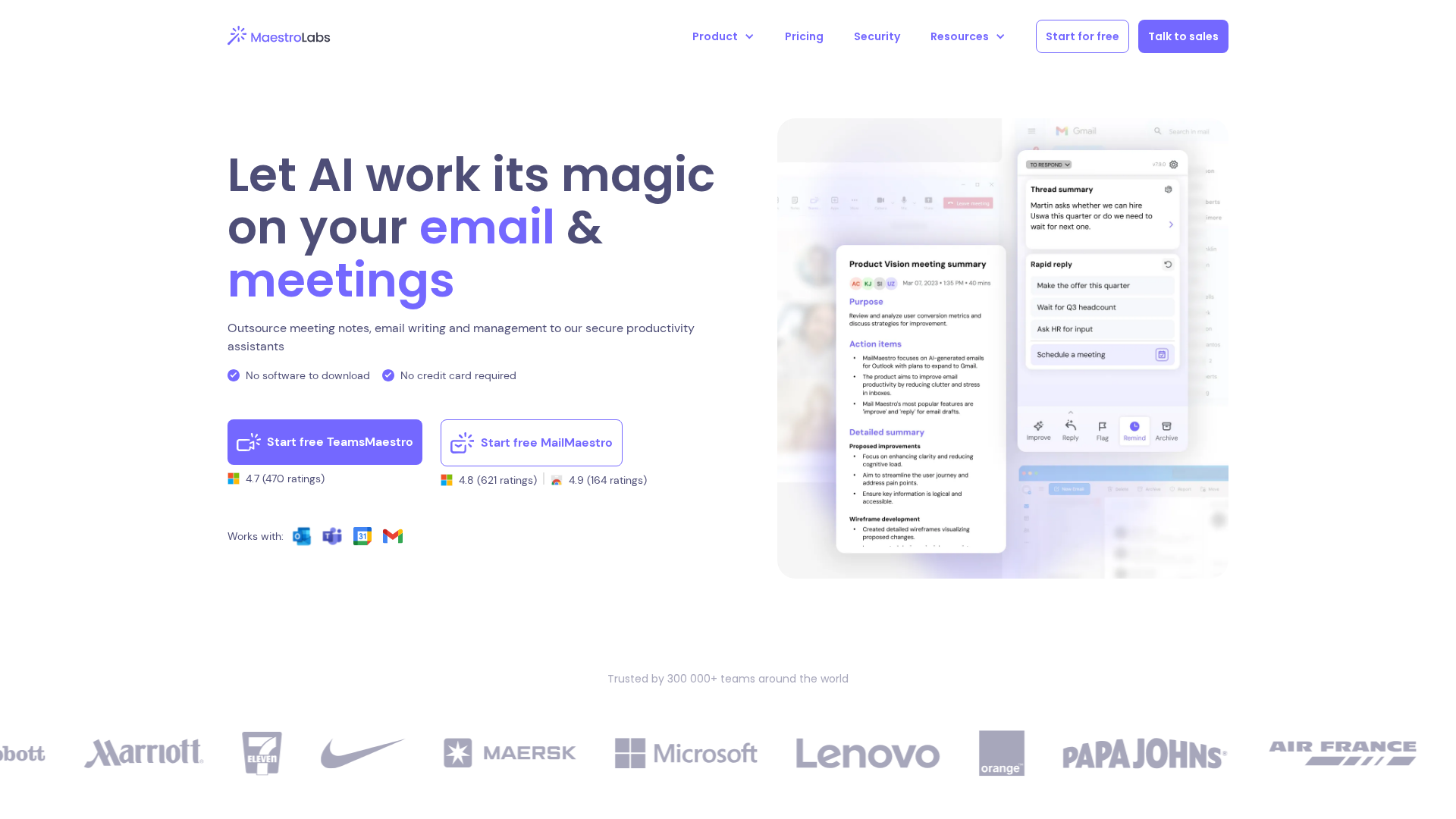 Promotional overview of MailMaestro and TeamsMaestro—a magical AI email writer, summarizer, and meeting notetaker.