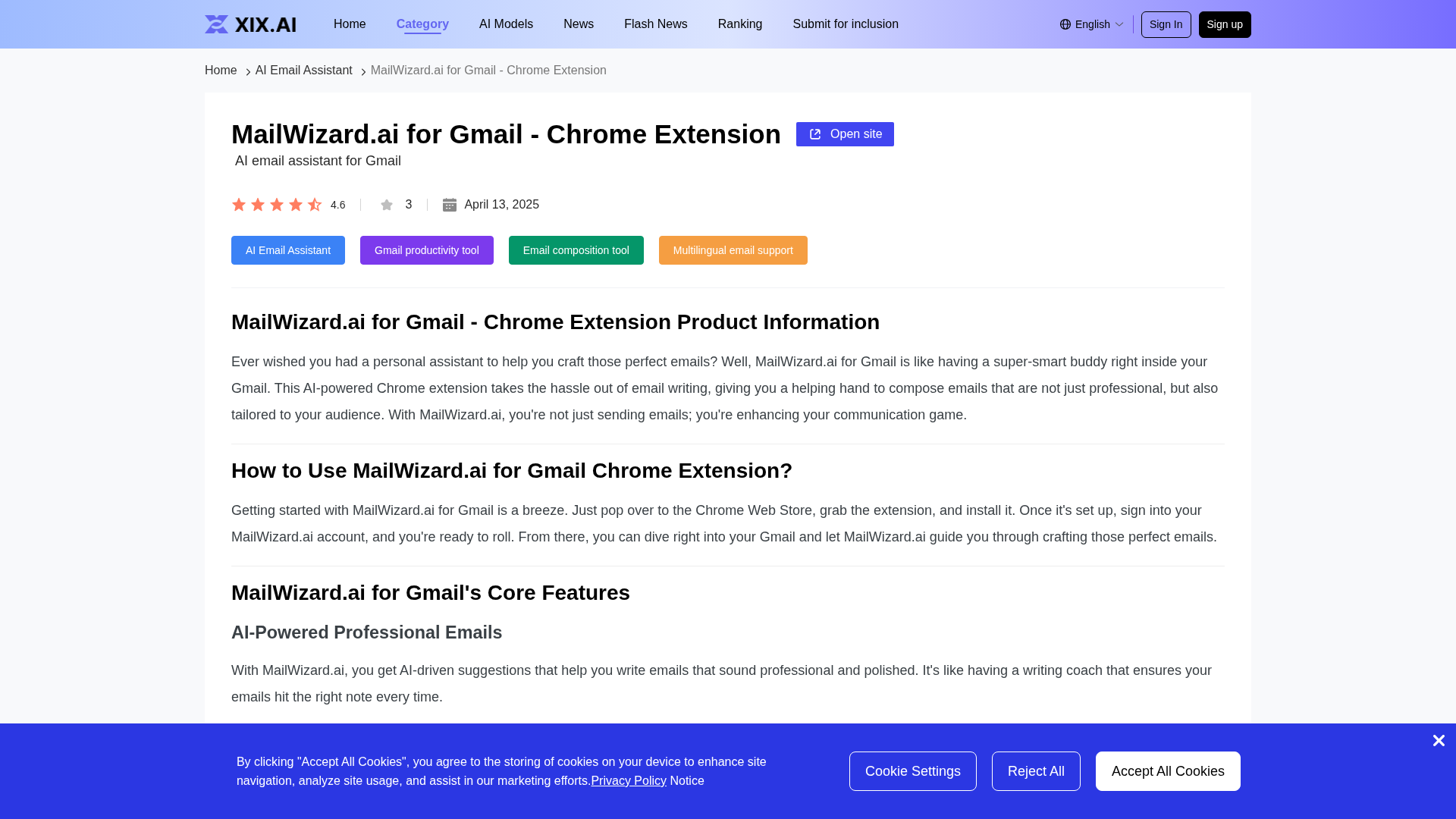 AI-powered Gmail extension that drafts and polishes professional emails in multiple languages.