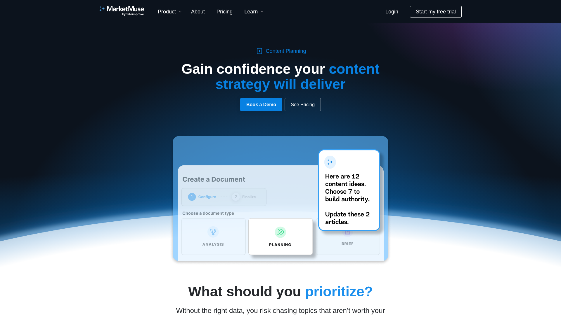 Automated site inventories, competitive SERP analysis, topic value scoring, and prescriptive plans to prioritize create/update work.