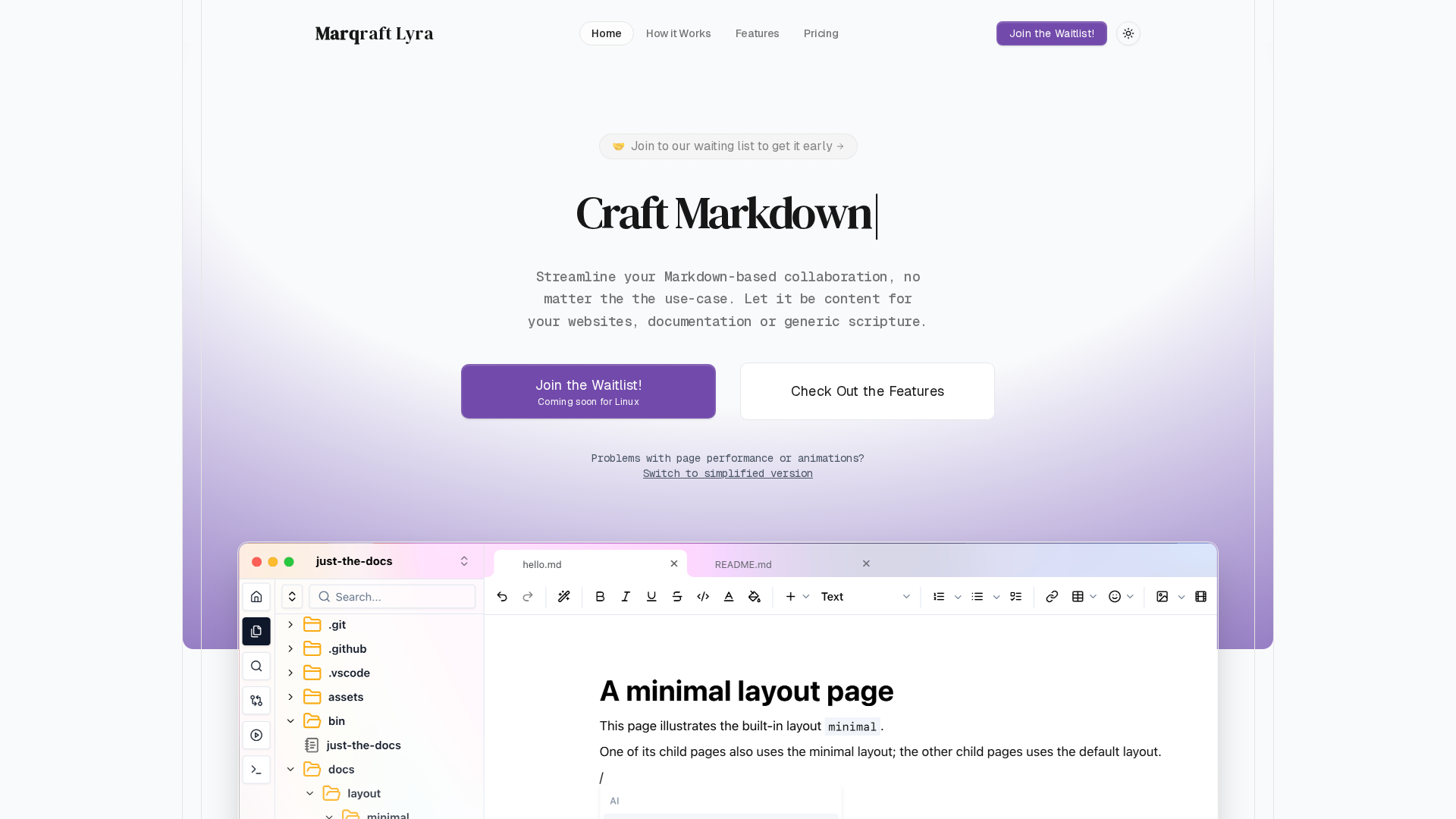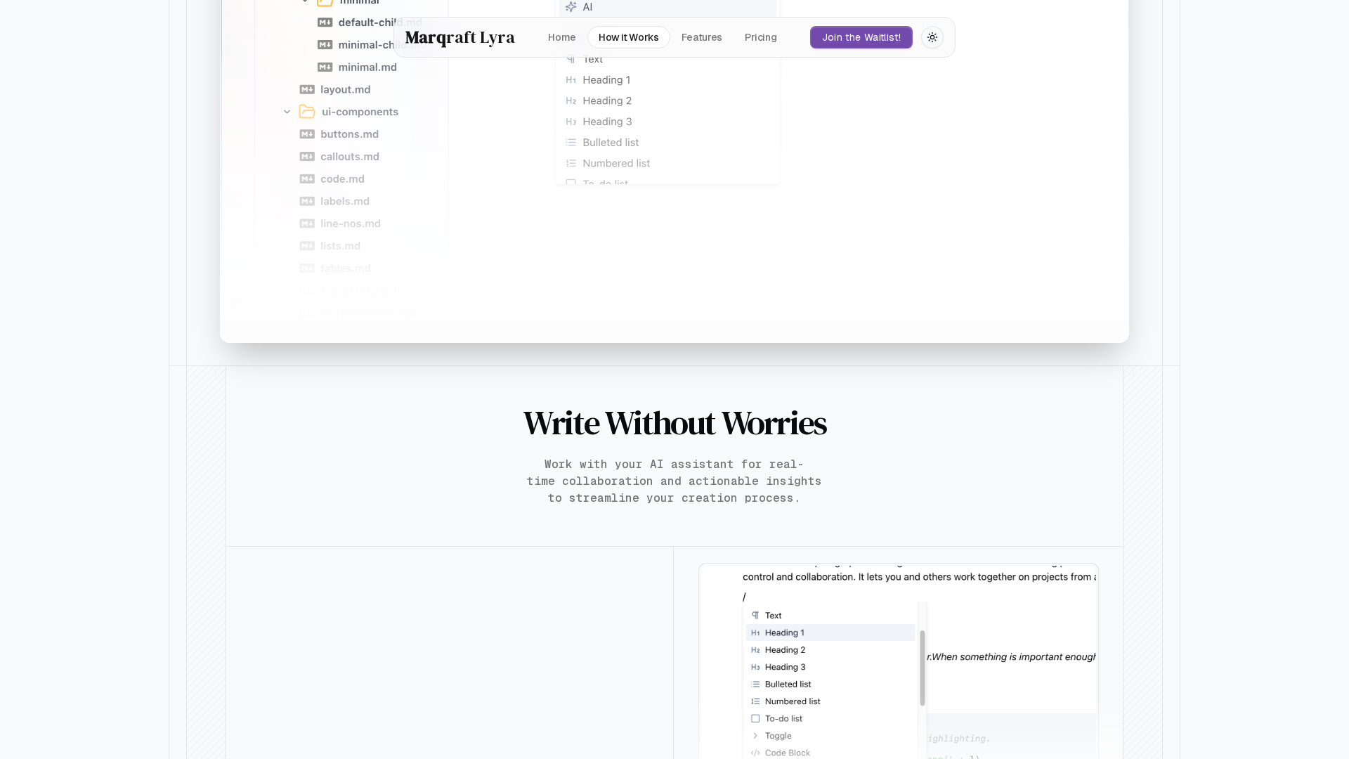 Join the waitlist for Marqraft Lyra, a Markdown-driven collaboration tool for websites, docs, and beyond.