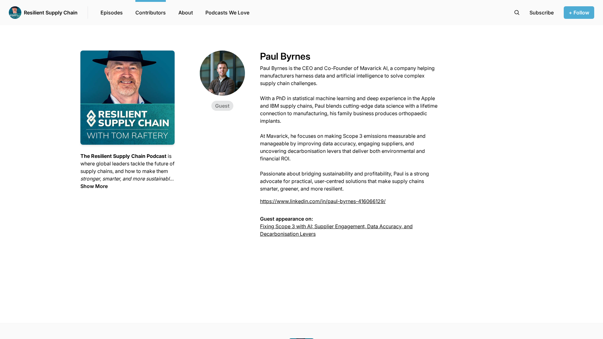 Paul Byrnes, CEO of Mavarick AI, applies data science to measure and reduce Scope 3 emissions in manufacturing supply chains.
