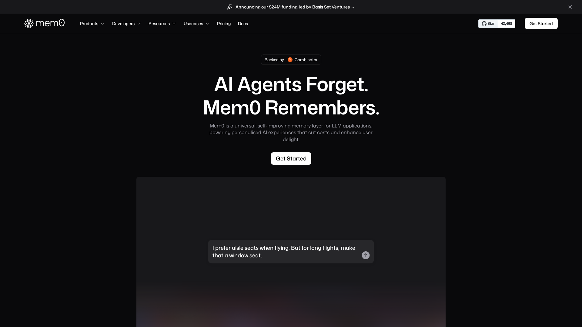Mem0 raises $24M to become the default memory layer for AI agents, enabling persistent memory with three lines of code.