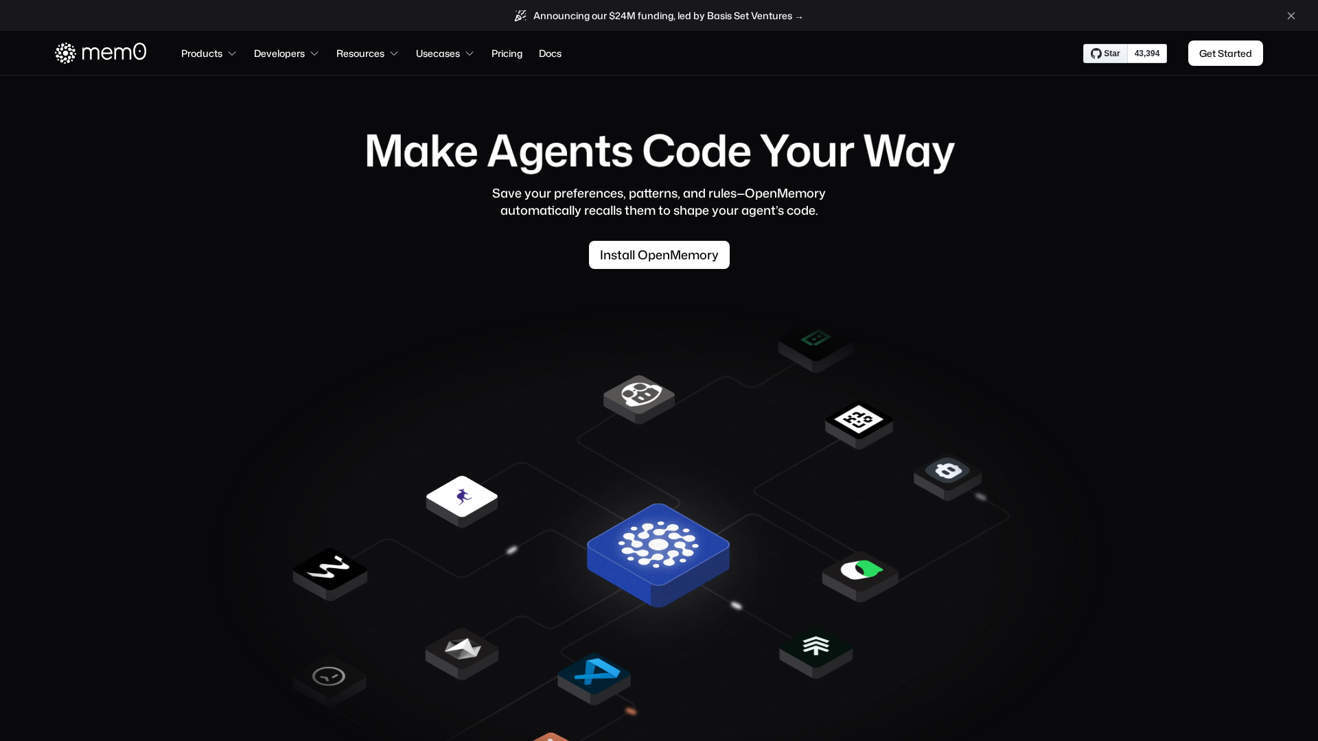 Mem0's OpenMemory auto-captures coding memories and delivers project-scoped memories to AI agents for on-context coding.