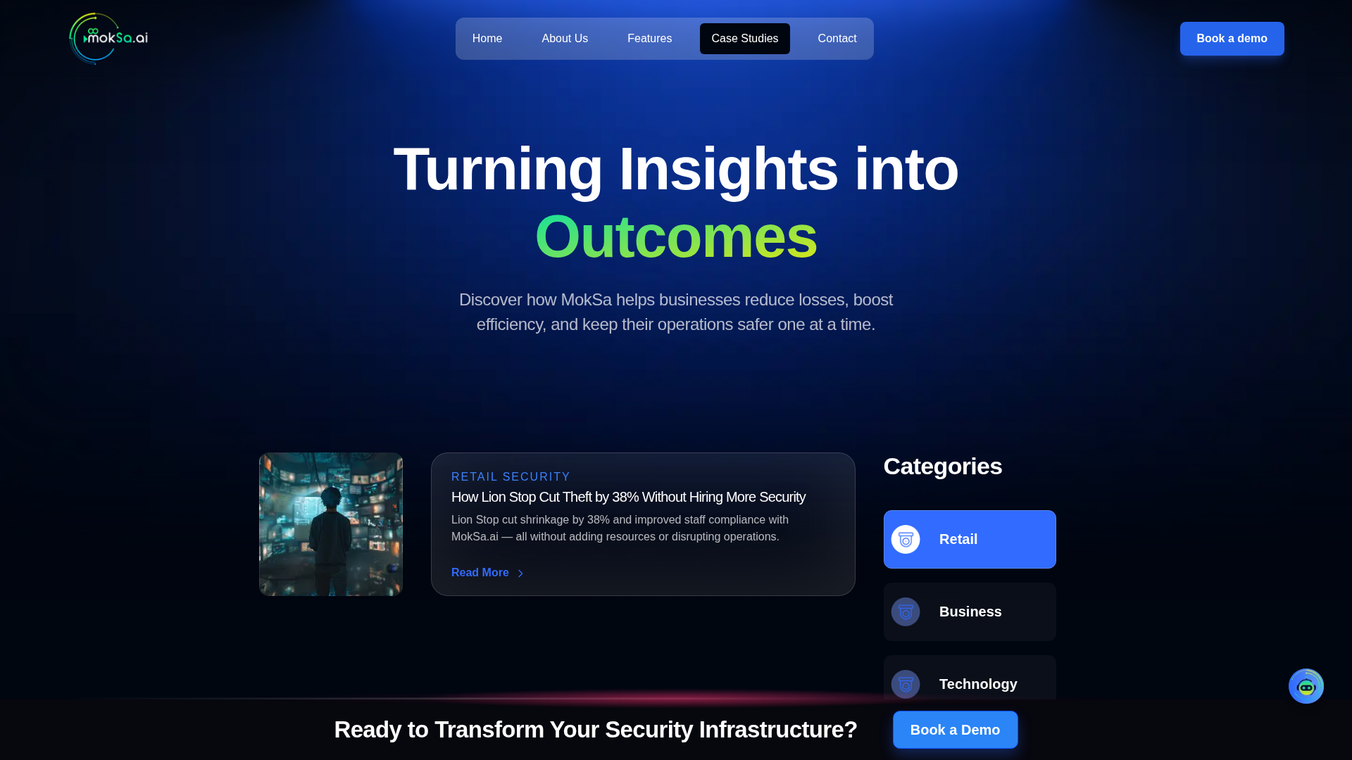 A retail case study showing a 38% theft reduction with MokSa.ai’s AI-powered surveillance, without extra hires.