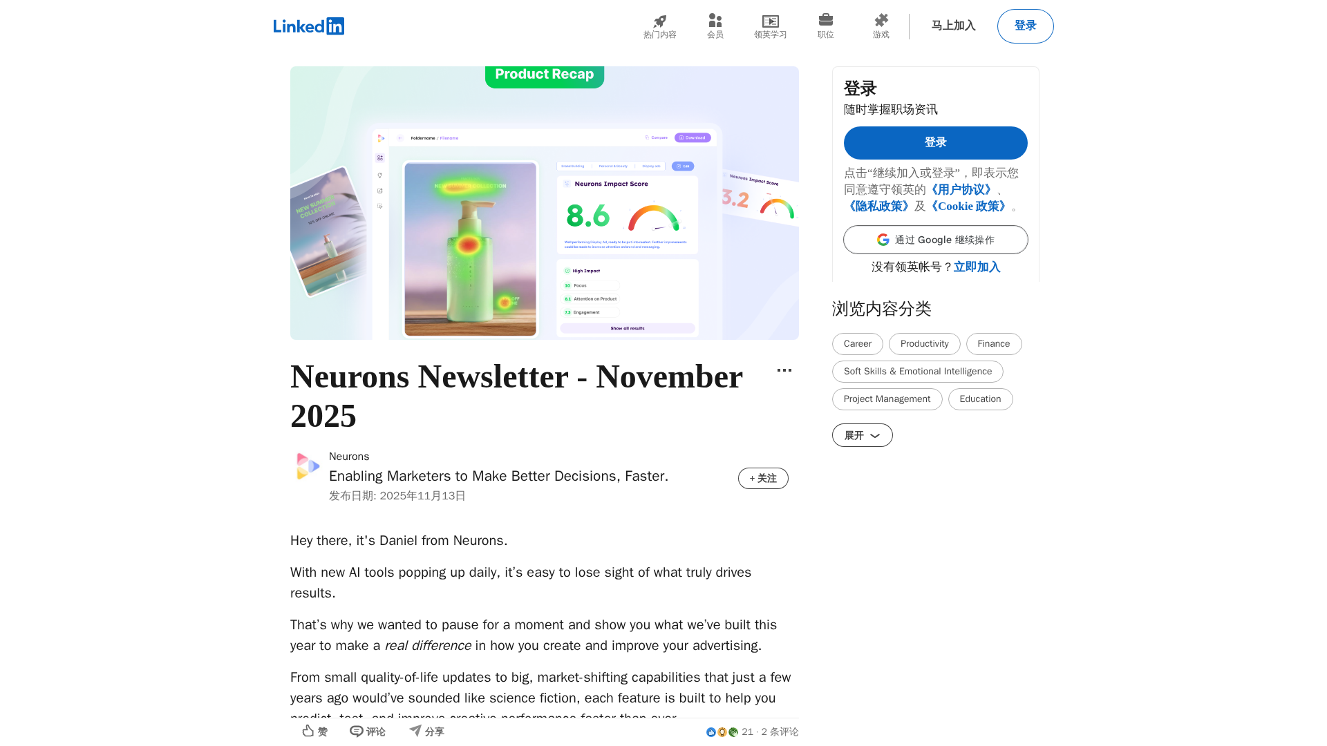 November 2025 update: Neurons Impact Score, Brand Kit, and Engagement + Memory metrics to supercharge ad creativity.