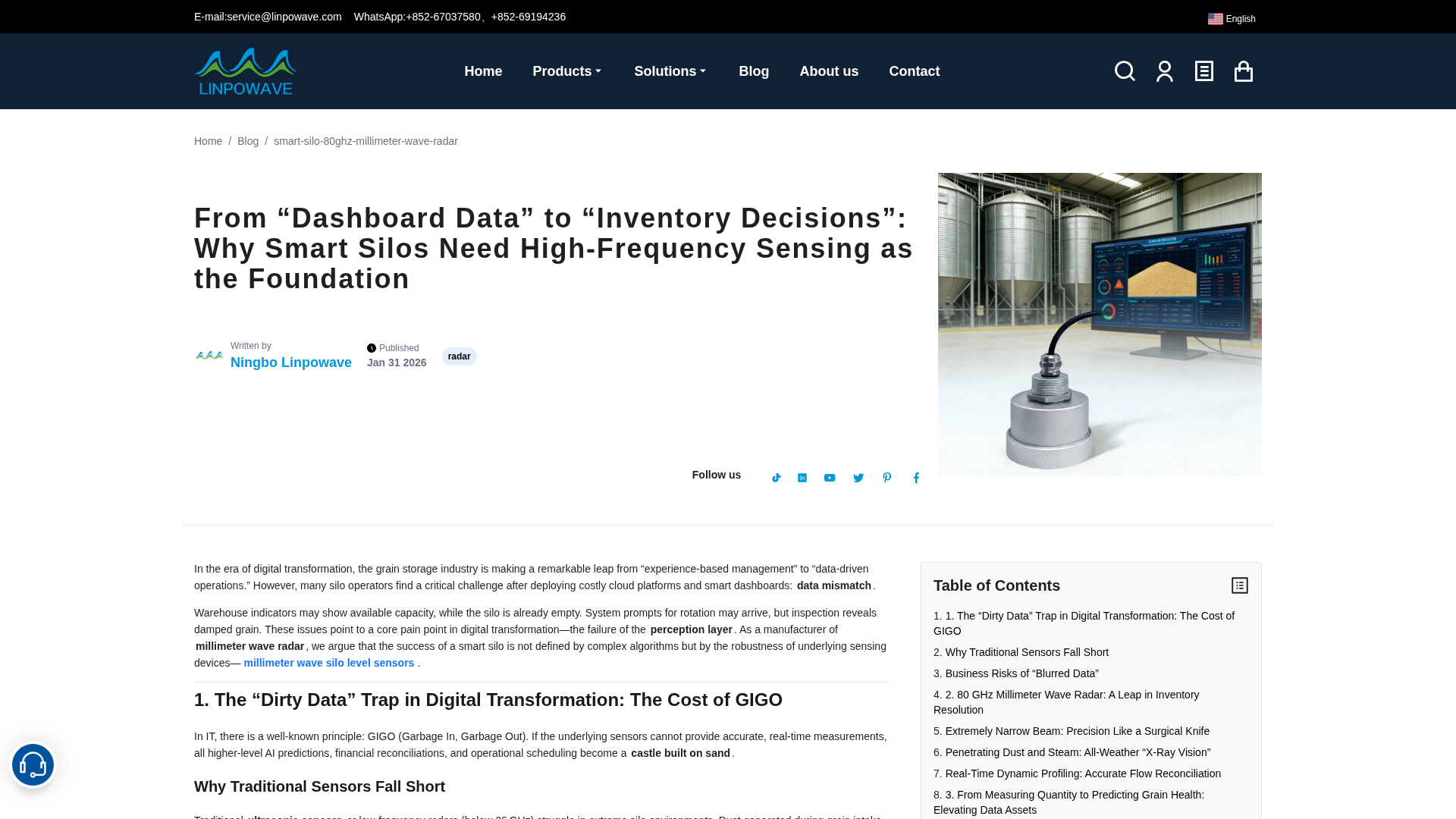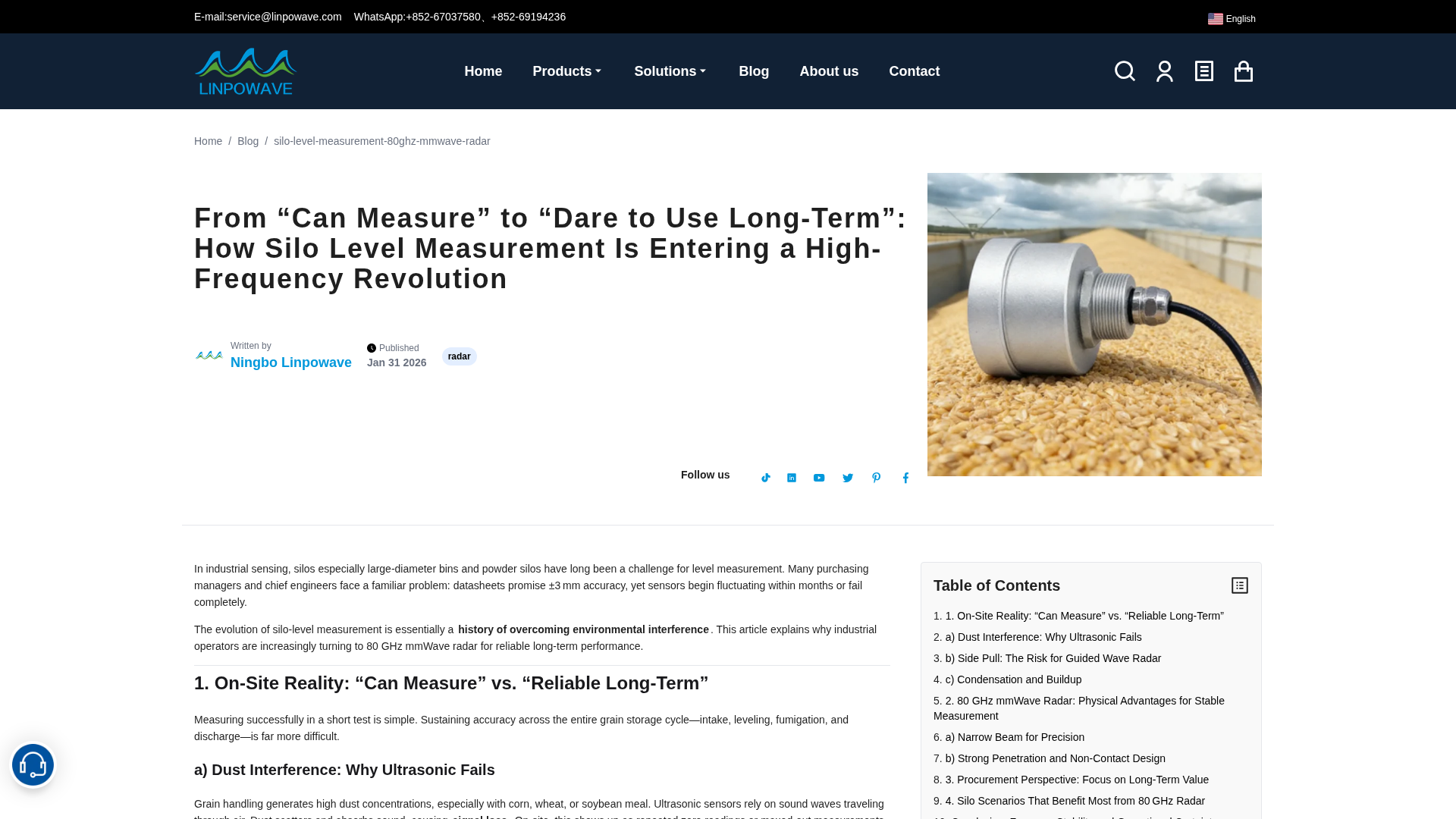 80 GHz mmWave radar delivers stable, non-contact silo level measurement with minimal maintenance and strong dust penetration.