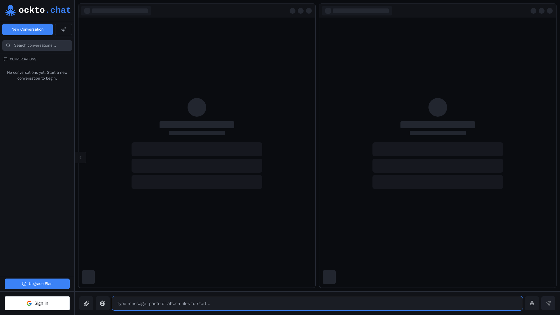 Ockto Chat is a chat platform that provides access to 300+ AI models (including OpenAI GPT variants, Anthropic Claude, Google Gemini, Llama/Meta, Qwen, DeepSeek, x‑AI, Ollama models, and more) with features like model switching mid-conversation, permanent top-ups for credits, and cross-chat capabilities. The site offers a freemium pricing model with a Free plan and paid Plus and Max tiers. Free includes basic chat features with daily credits and access to the model directory; Plus adds more monthly credits, up to 12 chatboxes, and additional capabilities (voice input, folders, image/PDF upload, web search, favorites, and export/import chats); Max increases credits and adds priority support and early access to features. Annual billing is advertised with a 20% savings option; exact annual totals are shown on the billing page. The home page emphasizes “one plan, all models” and mid-conversation model switching as core benefits.