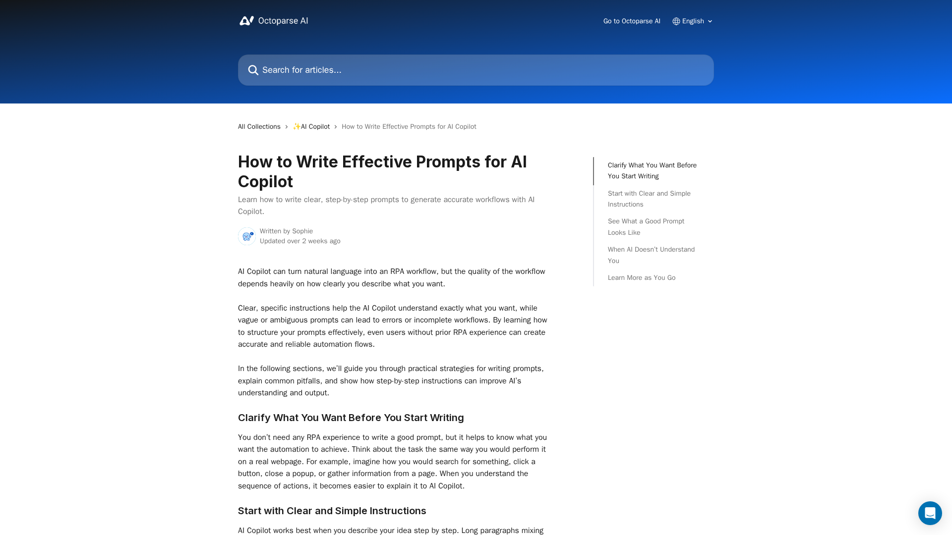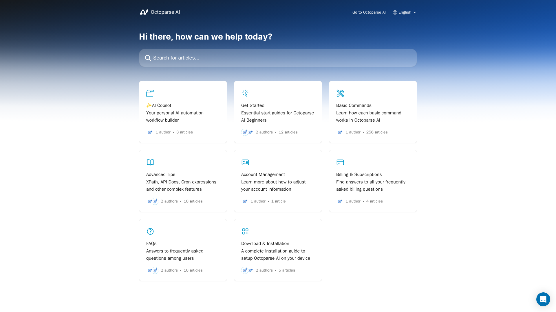 A centralized help center offering essential guides, commands, and setup for building AI-powered automations with Octoparse AI.