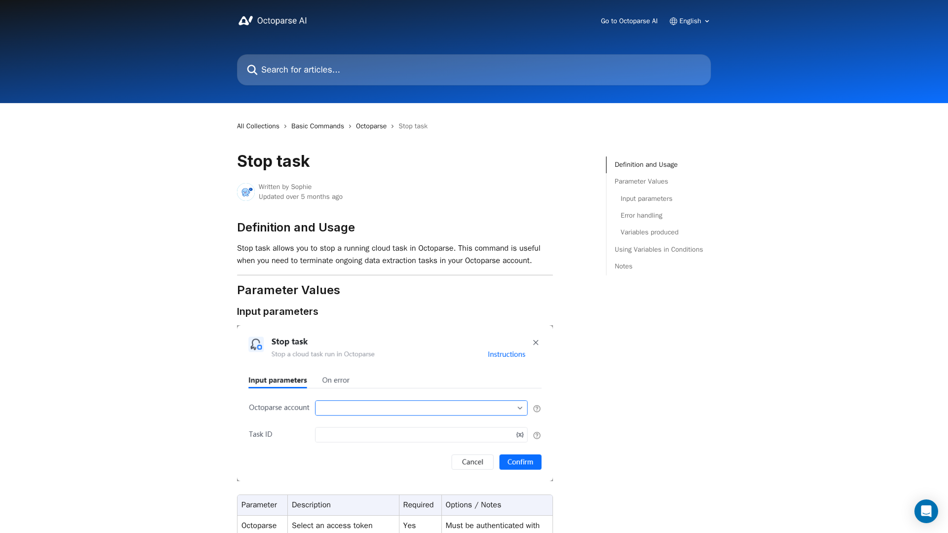 Learn how to stop one or more cloud tasks in Octoparse with the Stop task action.