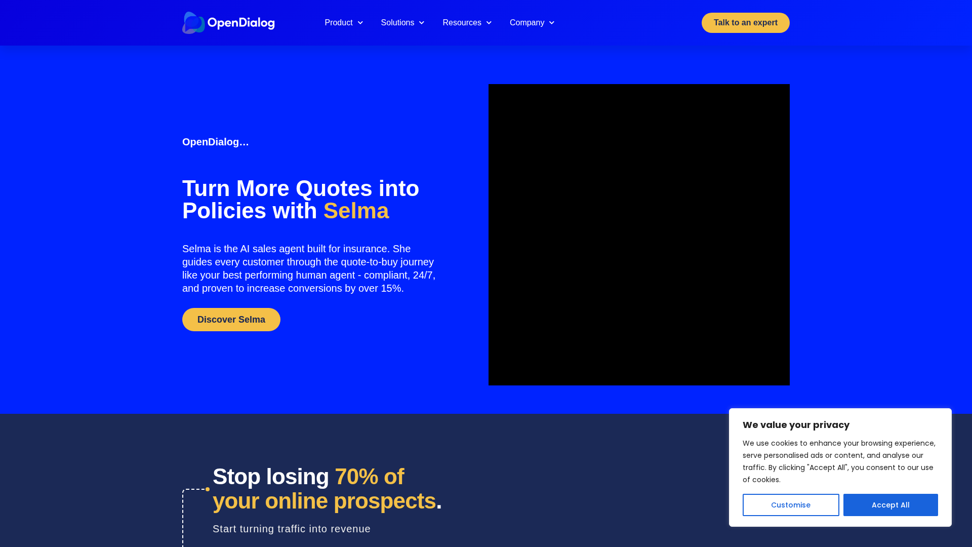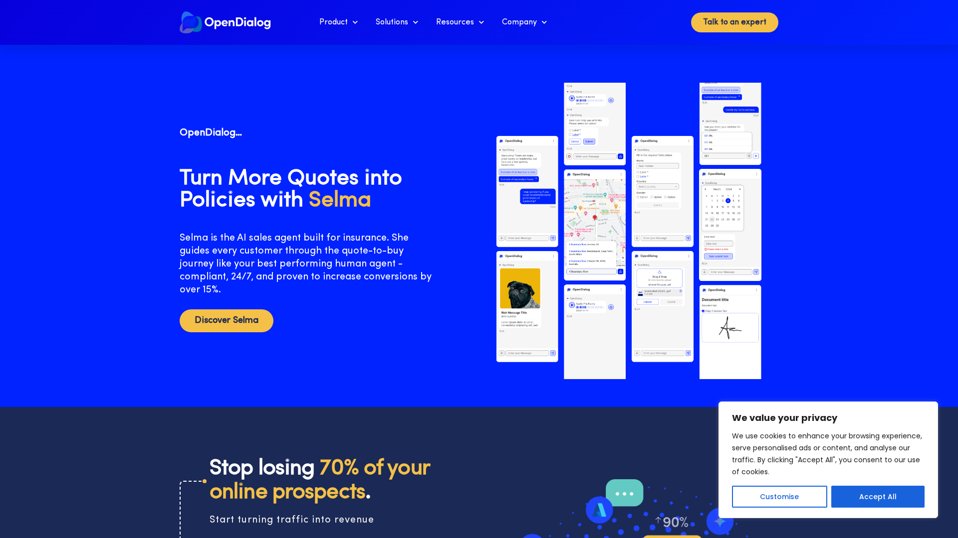OpenDialog's Selma AI sales agent guides insurance quotes, boosts conversions, and reduces costs with autonomous, compliant automation.