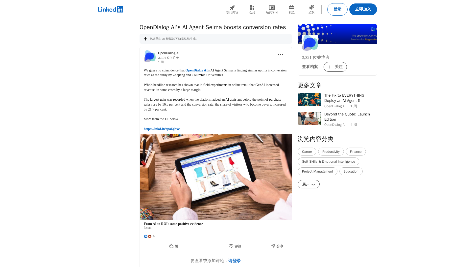 OpenDialog AI's Selma shows conversion uplifts that mirror a major GenAI ROI study in online retail.