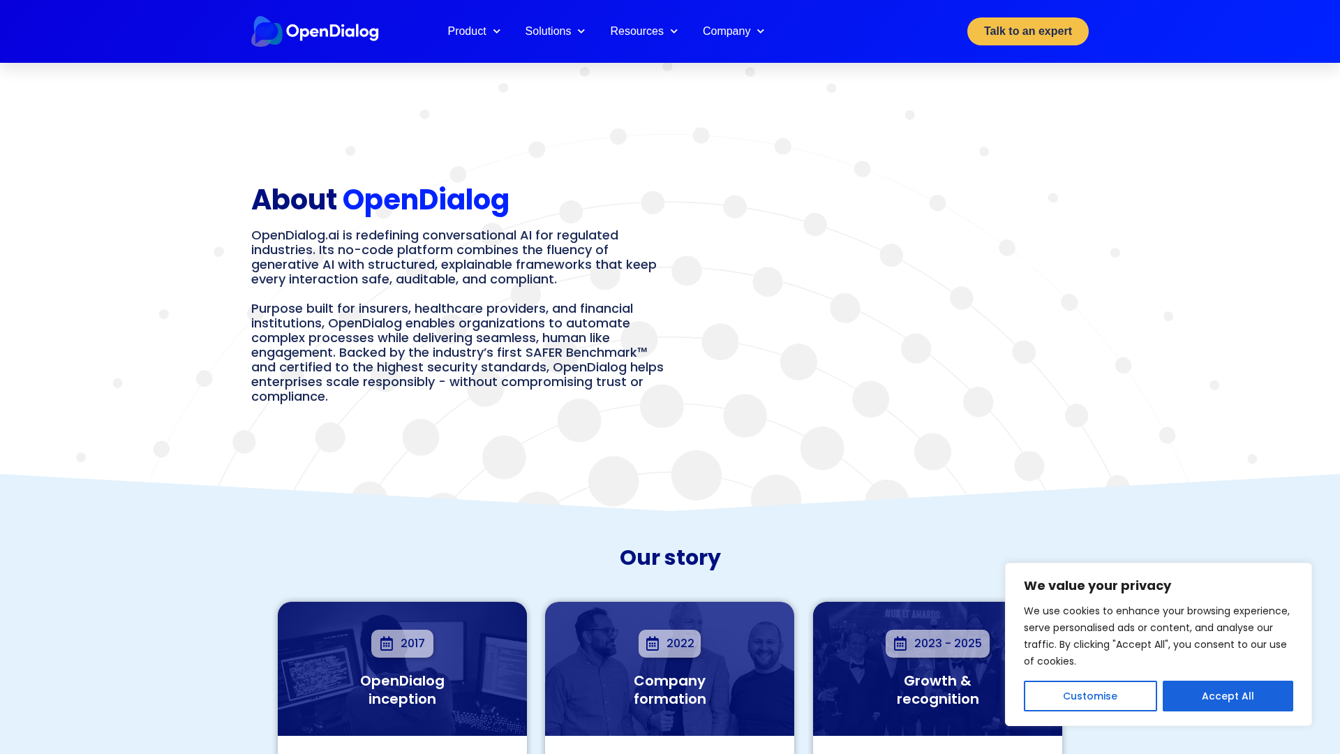 Overview of OpenDialog’s mission, history, and no-code platform for safe, compliant AI in regulated sectors.
