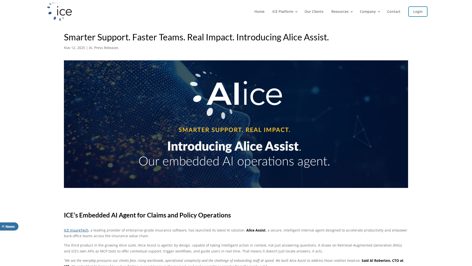 ICE InsureTech launches Alice Assist, an embedded AI agent that acts in context to accelerate insurance operations.