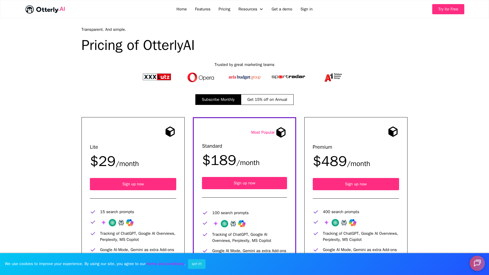 Transparent OtterlyAI pricing with tiered prompts, add-ons, and no hidden charges.