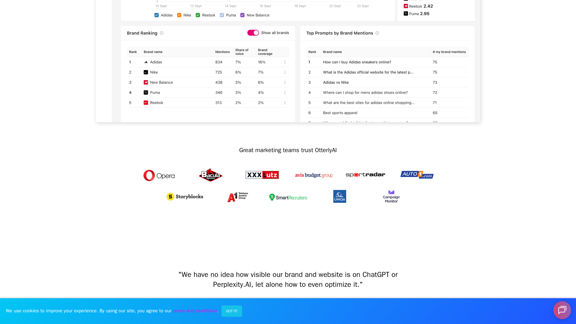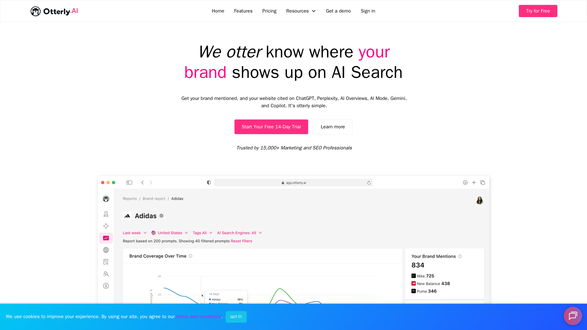 OtterlyAI is a SaaS platform that helps marketing teams monitor, measure, and optimize their brand and content visibility across AI-powered search experiences (e.g., ChatGPT, Perplexity, Google AI Overviews/AI Mode, Gemini, Microsoft Copilot). The product combines automated daily prompt monitoring, AI keyword (prompt) research, domain and link citation analytics, a Generative Engine Optimization (GEO) audit, and reporting/connectors (e.g., Google Looker Studio) to translate citations and prompt data into actionable optimizations and outreach activities. OtterlyAI emphasizes a blended approach that captures both LLM outputs and web-sourced citations so brands can benchmark Share of Voice, track citation growth and perform GEO audits to improve how AI search platforms cite their pages.