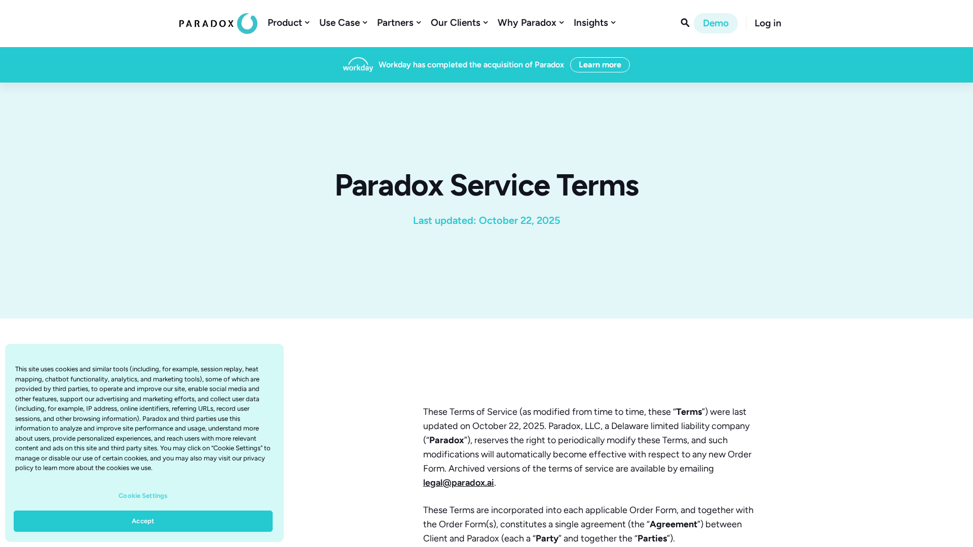 A comprehensive overview of Paradox’s SaaS Terms of Service covering data, IP, security, fees, and termination.