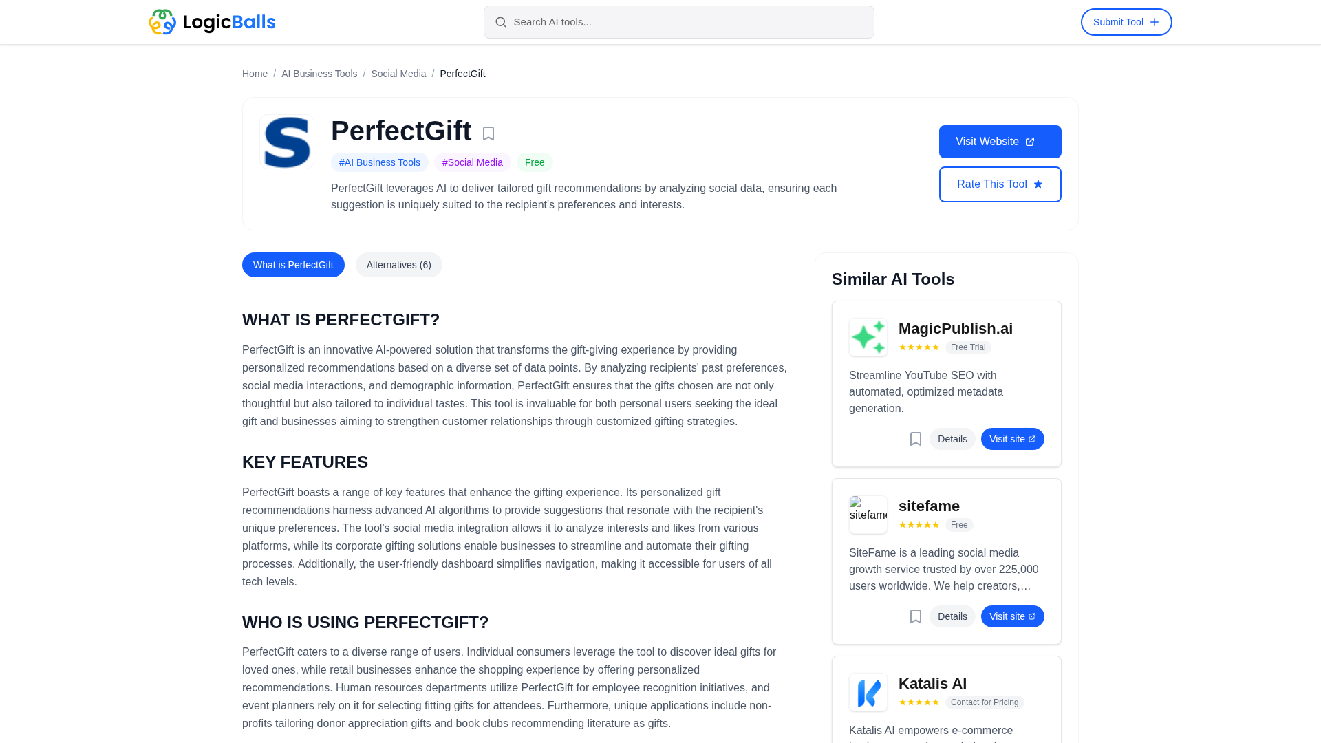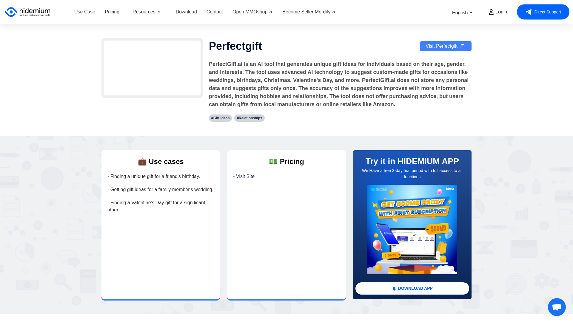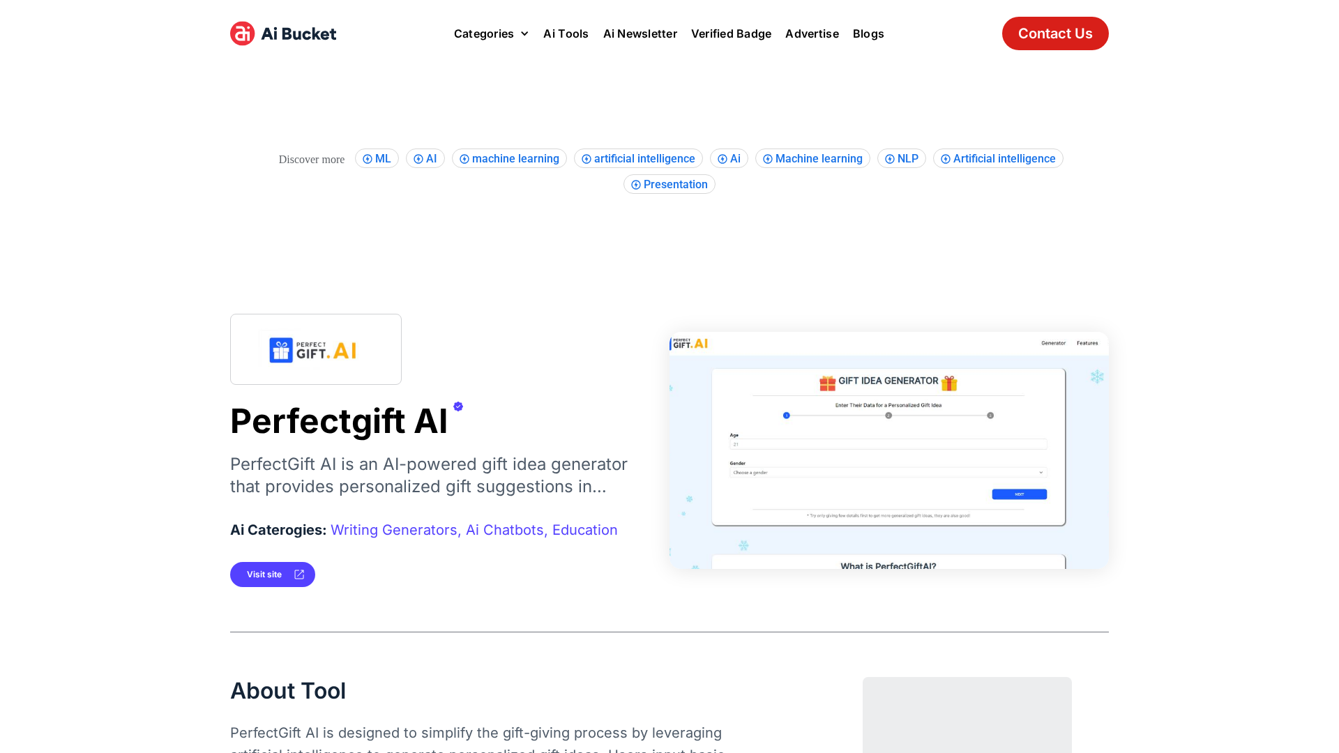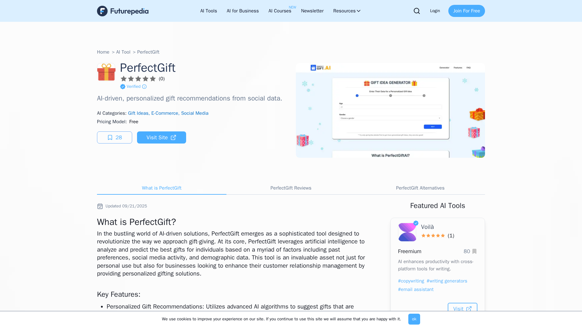 Third-party review (manytools.ai) describes an AI-driven gift ideas generator that suggests curated gift lists from simple inputs (recipient, occasion, preferences). This is unverified by the official site.