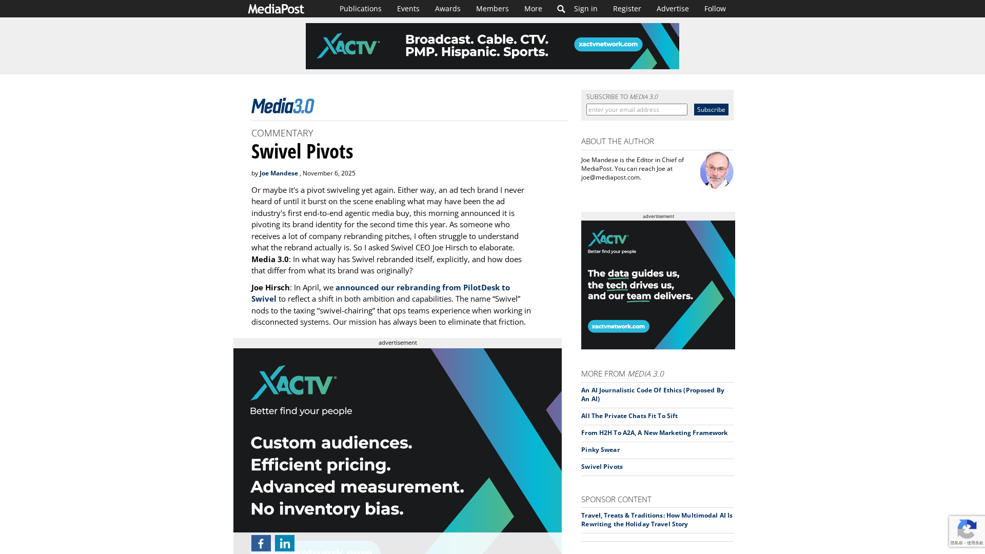 Swivel launches a refreshed brand and expanded platform, highlighting agentic ad operations for TV/streaming, including a seller agent and AdCP integration.