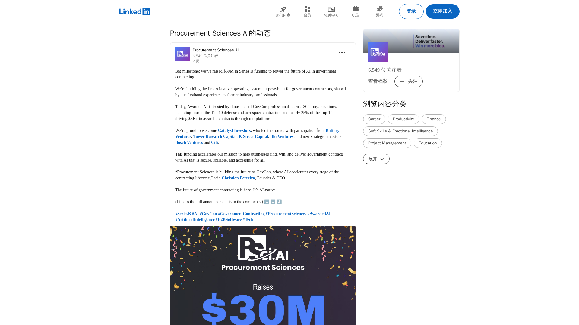 Procurement Sciences AI secures $30M Series B to scale Awarded AI, an AI-native OS for government contracting.