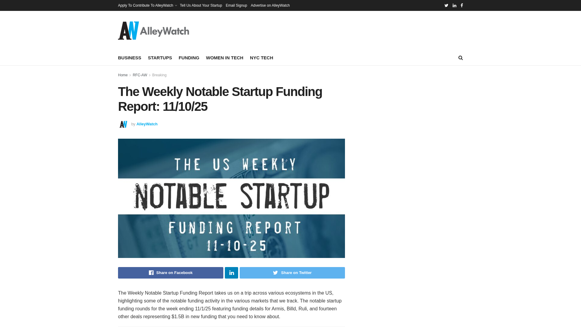 Weekly roundup of notable startup funding totaling about $1.5B across 18 deals in early November.