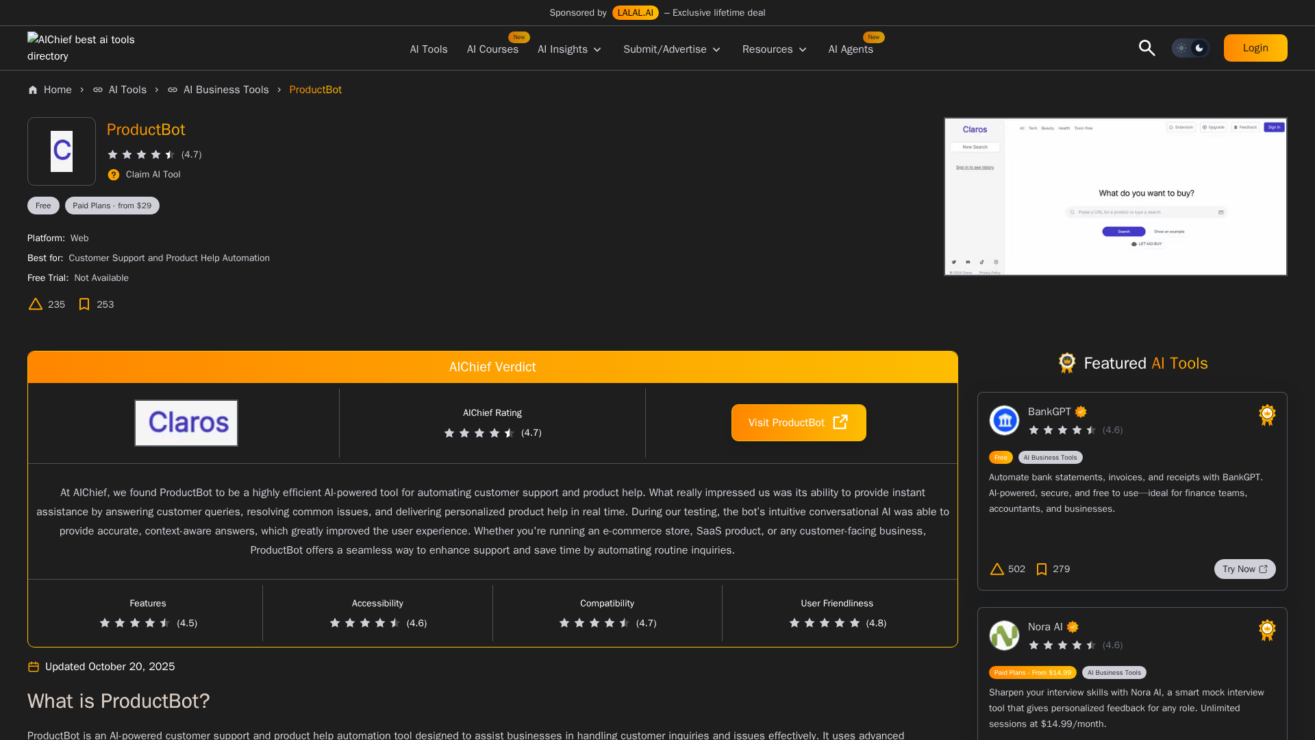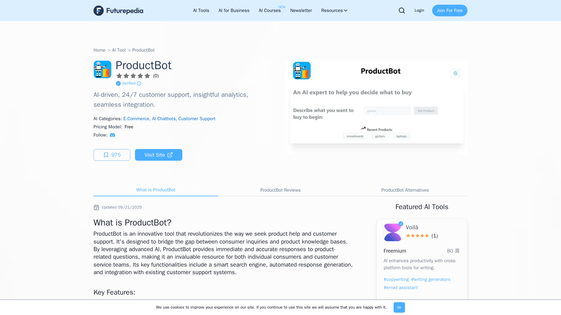 In-depth look at ProductBot AI for 24/7 product support, analytics, and seamless integrations.