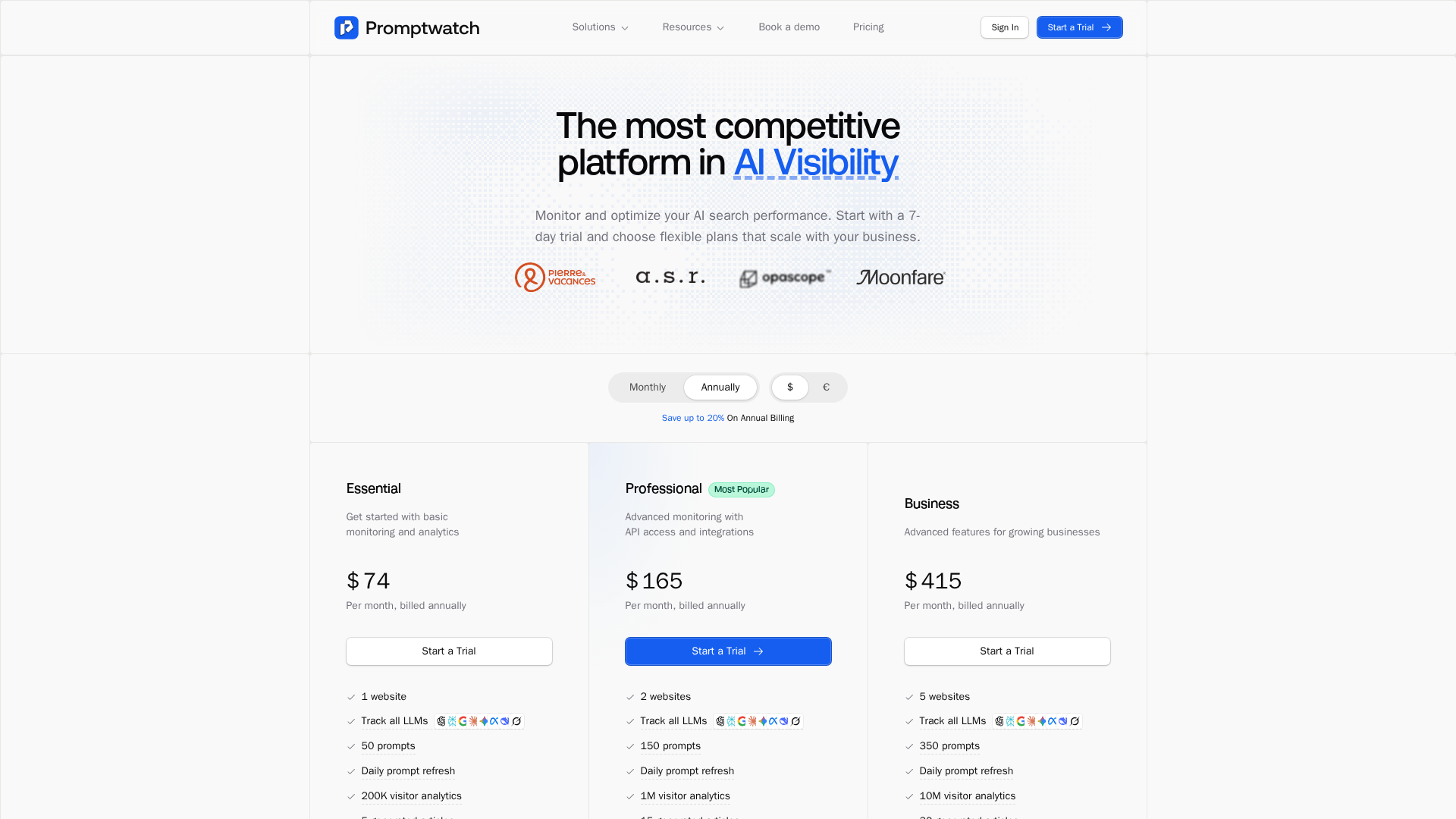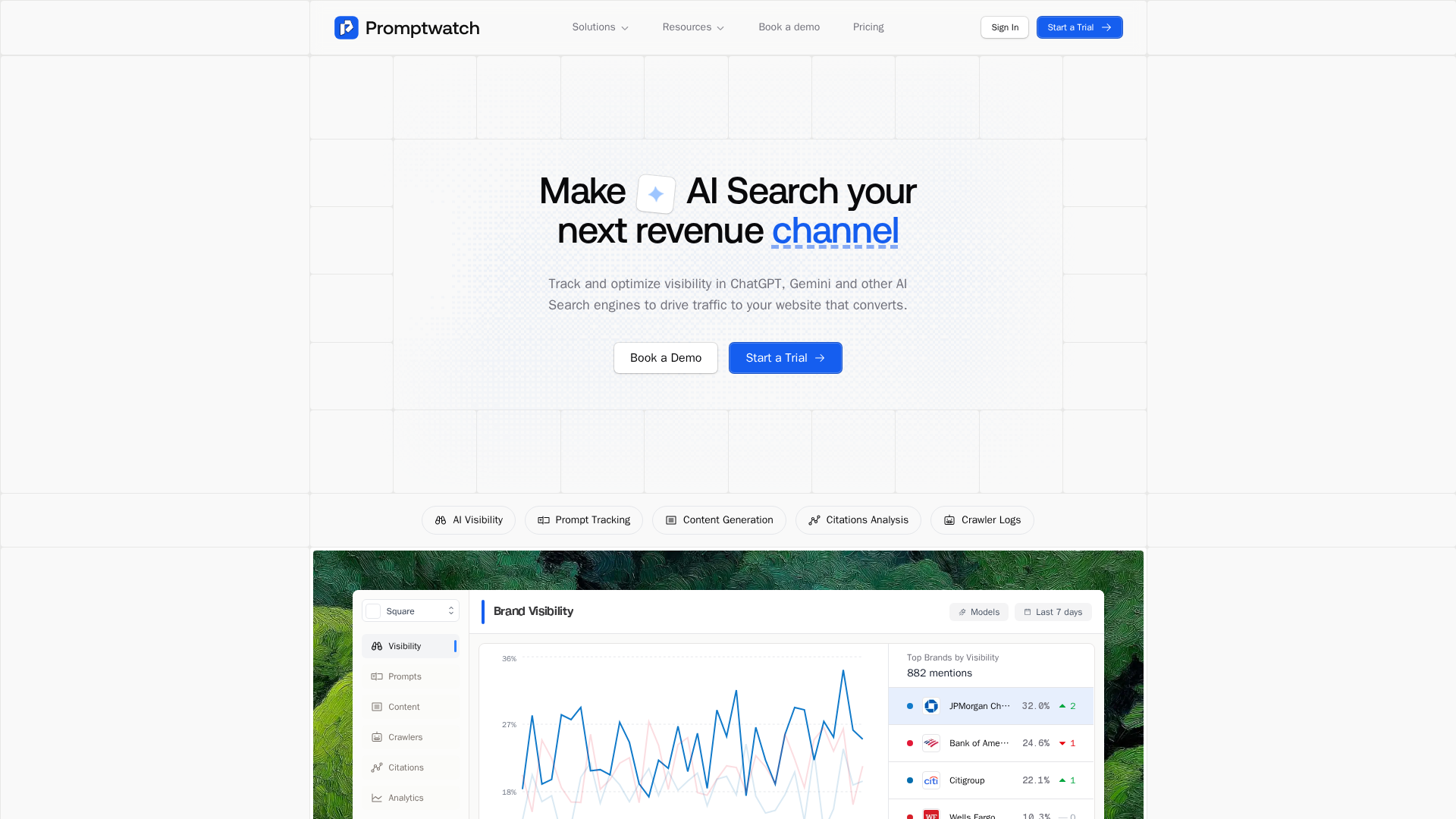 Promptwatch is a specialized AI visibility and Generative Engine Optimization (GEO) platform that monitors when and how large language models and AI assistants (e.g., ChatGPT, Claude, Perplexity, Gemini) reference your brand, products, and competitors. It collects real crawler logs and citation data from model UIs to deliver real-time alerts, citation analytics, prompt intelligence, and actionable content/technical optimization recommendations. Promptwatch helps marketing, SEO, and agency teams identify high-value prompts and pages to publish or optimize so AI assistants will cite and recommend their brand, driving measurable traffic and conversions. The service positions itself as an early leader in AI SEO by providing one of the largest real prompt datasets and supporting multilingual monitoring, persona-based insights, and integrations (e.g., Looker Studio). The platform includes monitoring & analytics, content generation features, team collaboration tools, API access, and custom enterprise offerings with dedicated support.